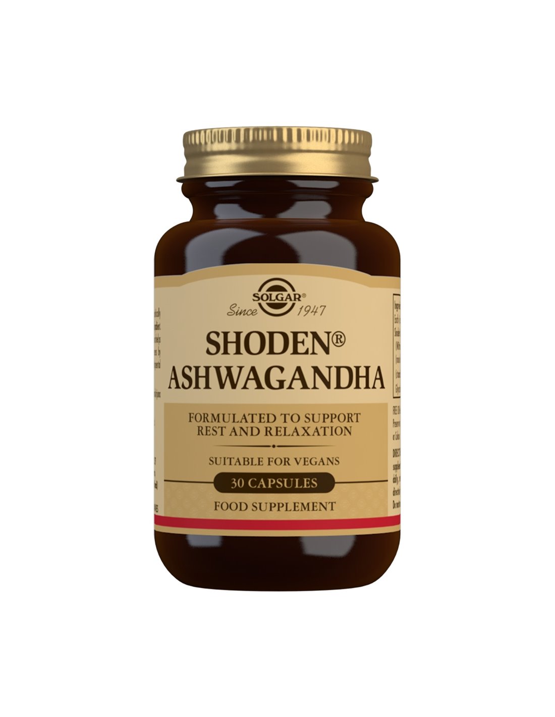 Solgar Shoden Ashwagandha 30vcaps es un complemento alimenticio formulado a base de ashwagandha.