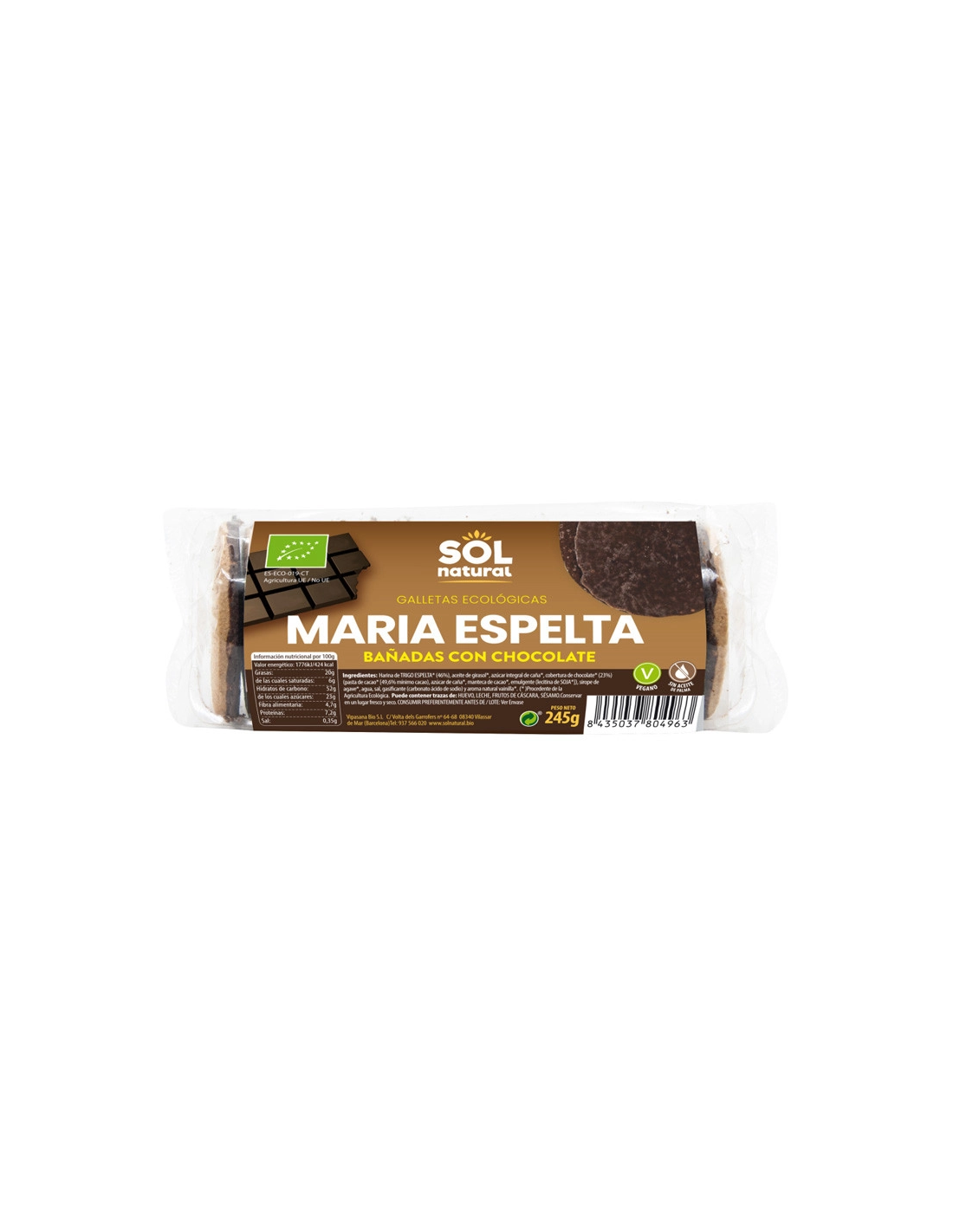 Marías Espelta Bañadas Con Chocolate Bio 245 g  de Solnatural