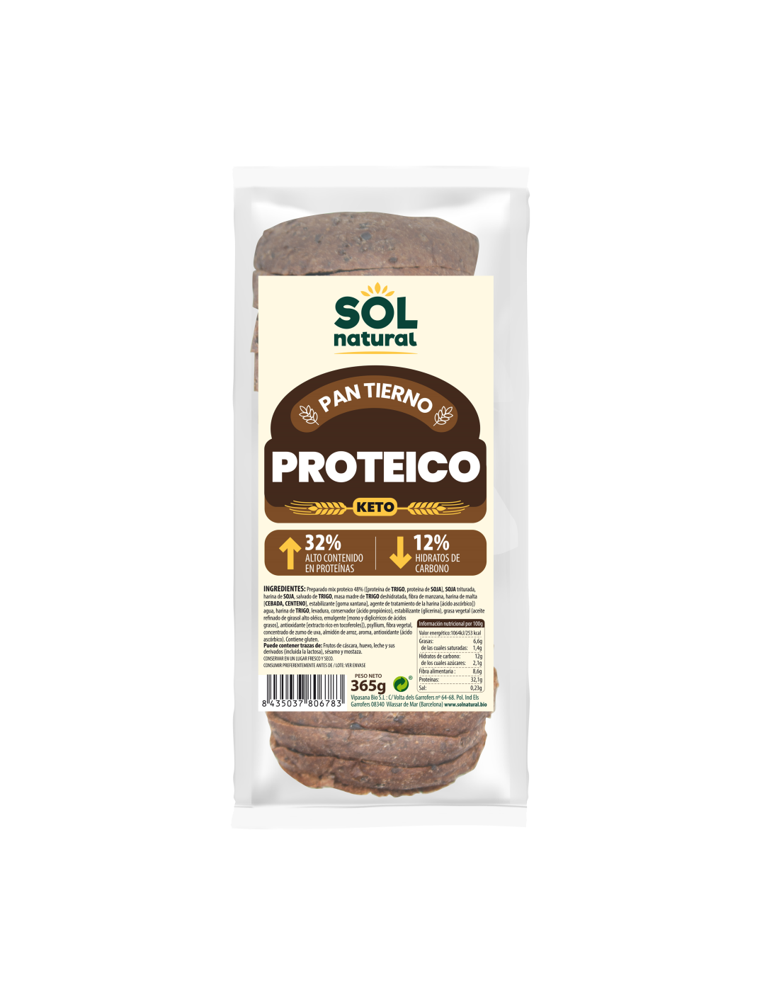 Pack 12 Uds. Pan De Molde Proteico Keto 365 g  de Solnatural