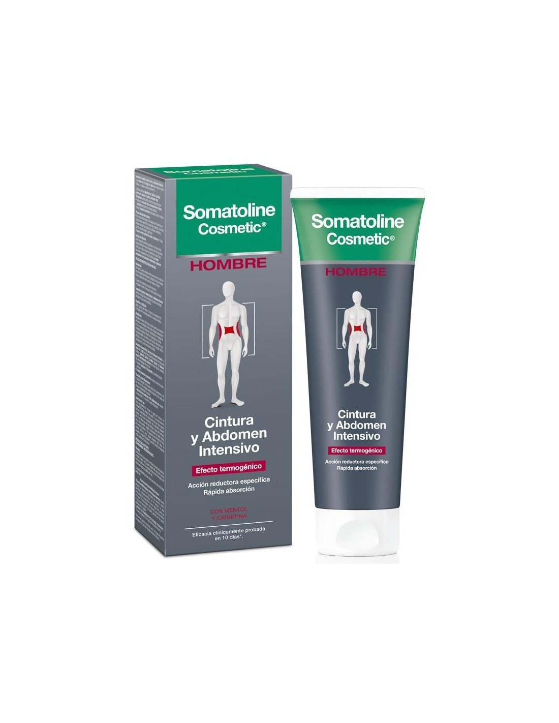 SOMATOLINETratamiento reductor específicamente formulado para el hombre, fácil de usar, para reducir la graza localizada en la zona del vientre y del abdomen con resultados visibles tras 7 días. Crema con una textura ligera que se aplica en pocos minutos y se masajea y absorbe rápidamente, sin engrasar la piel. Efecto calor-frío.