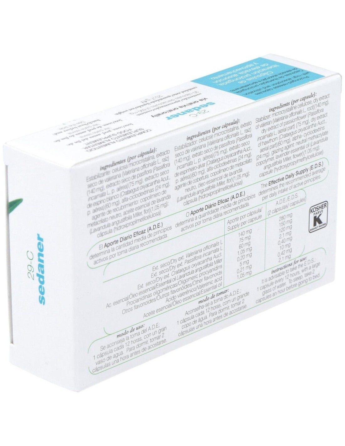 Extracto liofilizado de valeriana (Valeriana officinalis L, raíz)(140 mg), extracto liofilizado de pasiflora (Passiflora incarnata L, P. aérea)(75 mg), extracto liofilizado de espino blanco (Crataegus oxyacantha L, P. aérea)(60 mg), estabilizante: celulosa microcristalina, a-ciclodextrina, aceite esencial de lavanda (Lavandula spica L)(1 mg): agente de recubrimiento: copolímero de metacrilato neutro, cápsula (hidroxipropilmetilcelulosa).