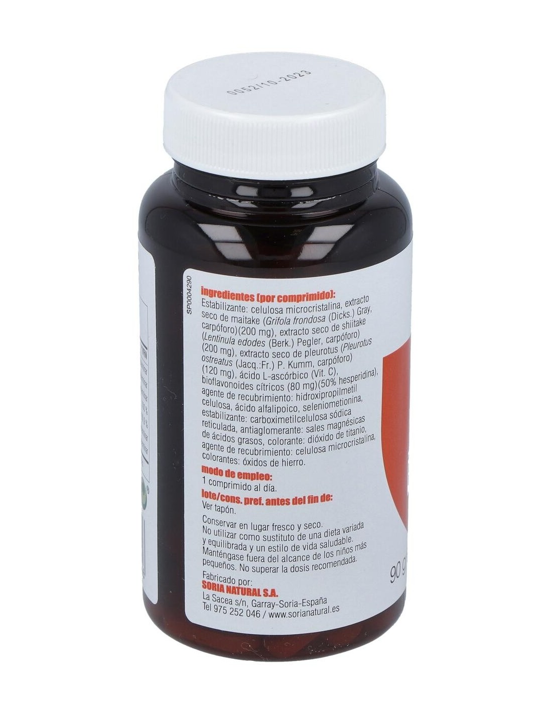 Estabilizante: celulosa microcristalina, Extracto seco de Maitake (Grifola frondosa, hongo), Extracto seco de Shiitake (Lentinula edodes, hongo), Extracto seco de Pleurotus (Pleurotus ostreatus, hongo), Ácido ascórbico, Hesperidina metil chalcona, Ácido alfa-lipoico, estabilizante: carboximetilcelulosa sódica reticulada, antiaglomerante: sales magnésicas de ácidos grasos, Selenometionina