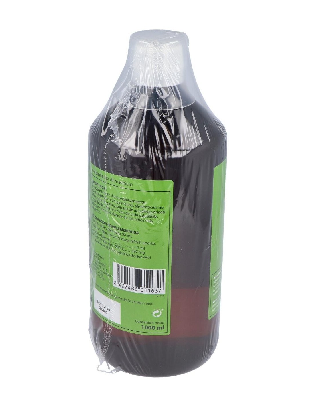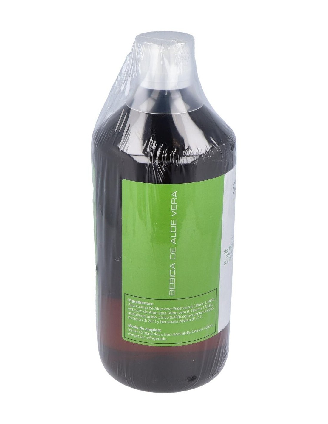 Jugo de aloe vera de cultivo ecológico, ácido cítrico, sorbato potásico y benzoato.