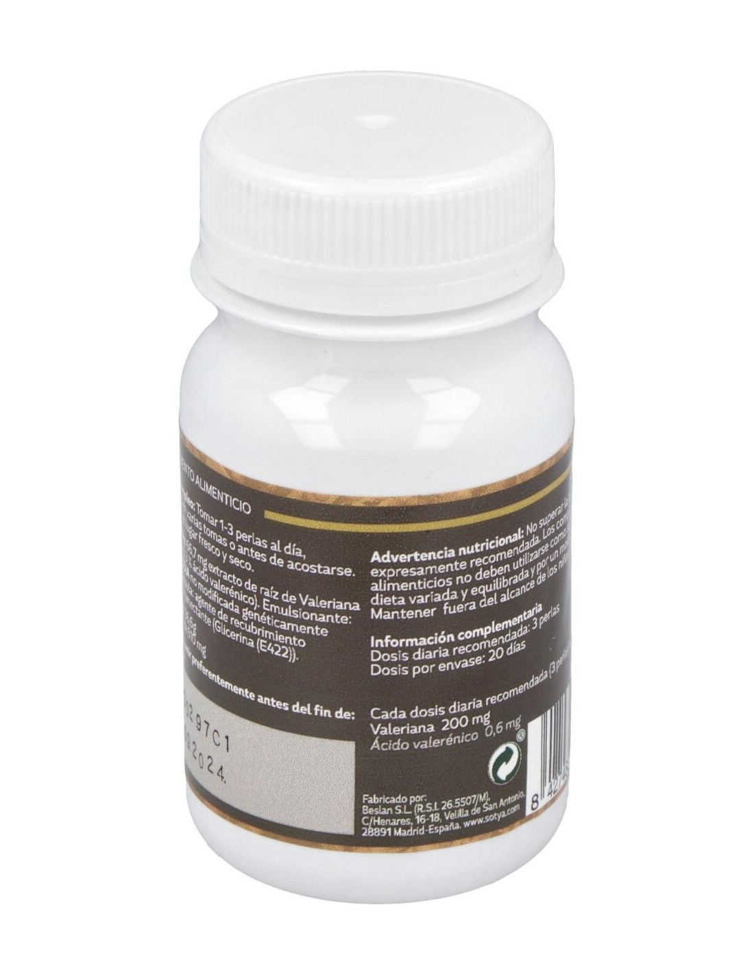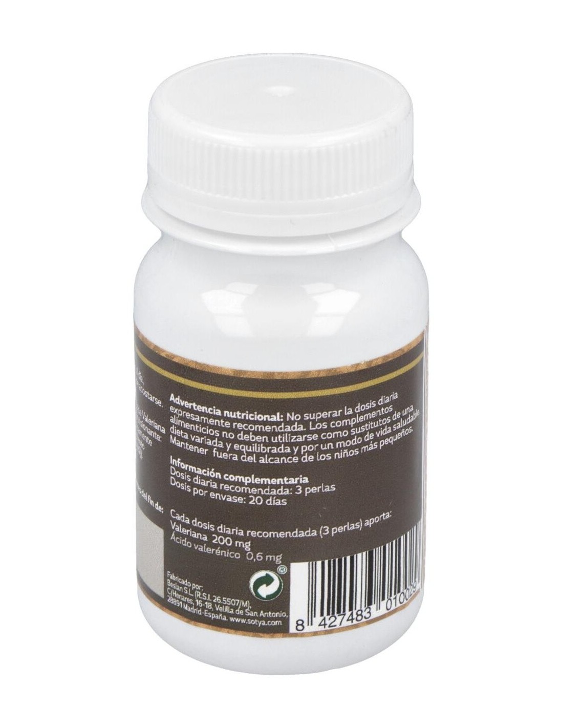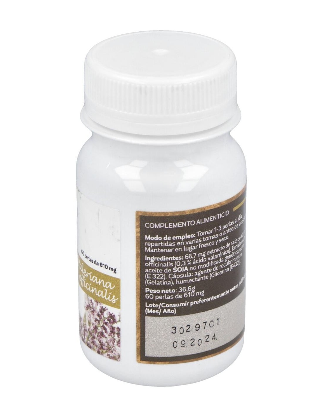 300mg de valeriana (Valeriana officinalis) con 0,5% de ácido valerénico. Perla de gelatina y glicerina. Peso total, incluida cobertura, 440mg.