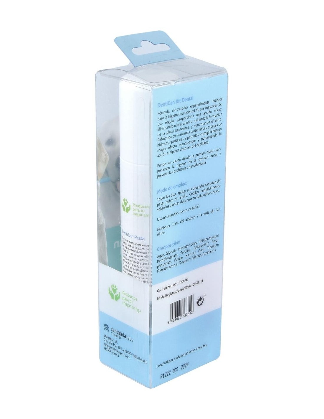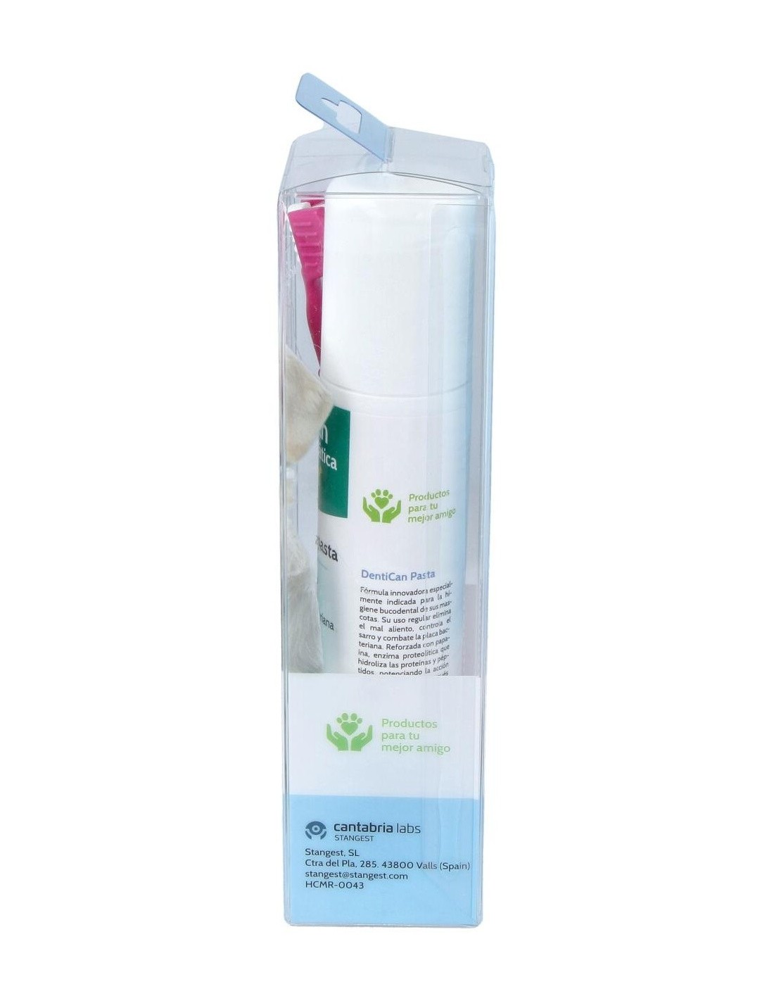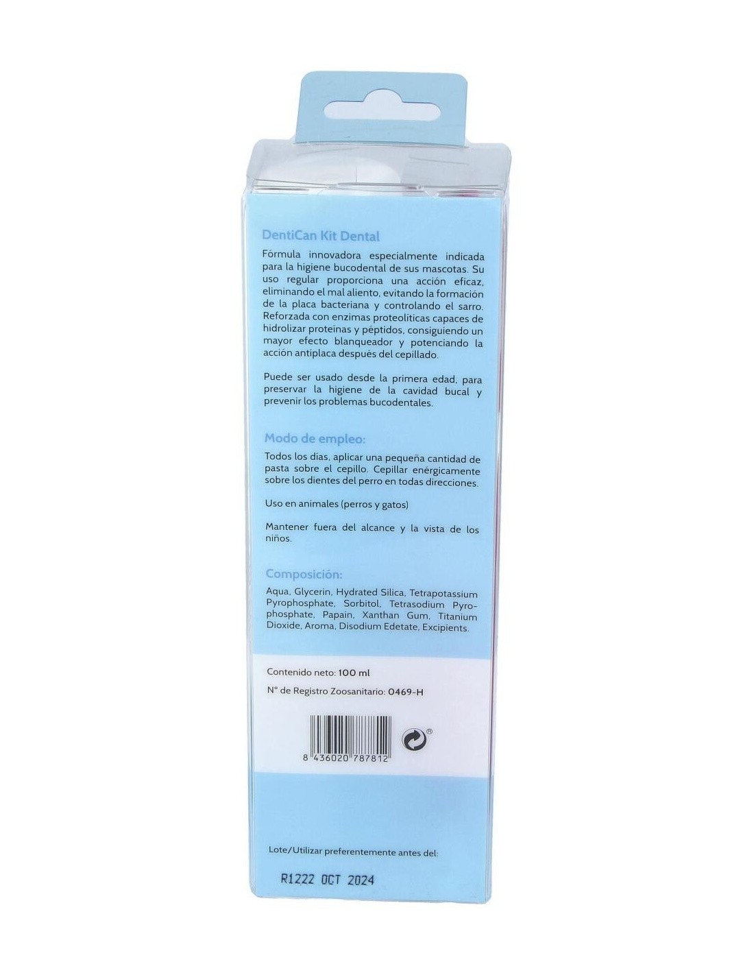 Incluye una pasta enzimática y un cepillo con triple cabezal, constituyendo un cuidado integral para la salud dental del perro.