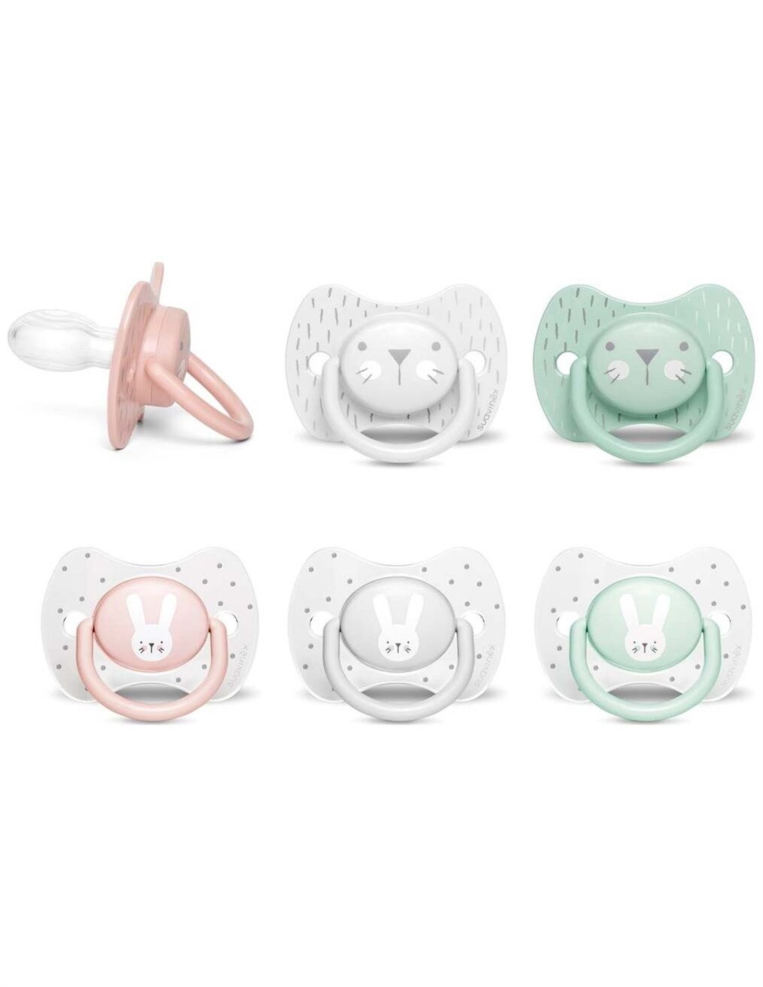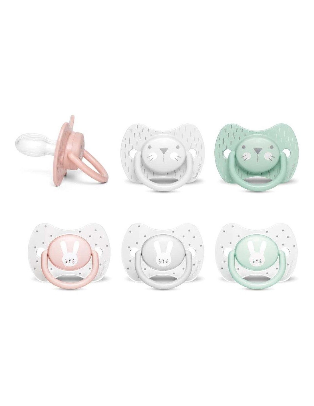 Chupete con tetina fisiológica de silicona pediátrica indicada para bebés a partir de los 18 meses de edad. Se adapta a la boca del bebé sin ejercer presión sobre el paladar. Elaborado con silicona médica con forma plana y simétrica. No absorbe olores ni sabores, es fácil de limpiar. Avalada por la sociedad española de odontopediatría. *El color y diseño del producto pueden variar según la disponibilidad.