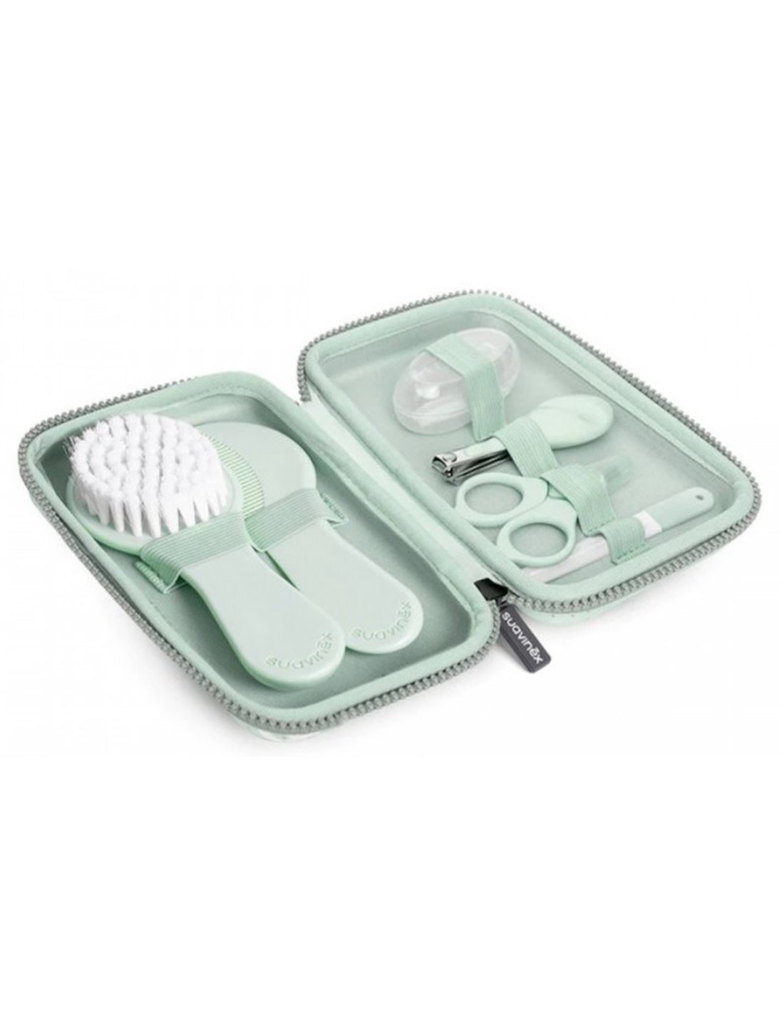 SUAVINEXIdela para el aseo diario del bebé a partir de 0 meses. Contiene:\ Neceser, Cepillo, Peine, Cepillo Dental, Tijeritas, Lima, Cortaúñas.
