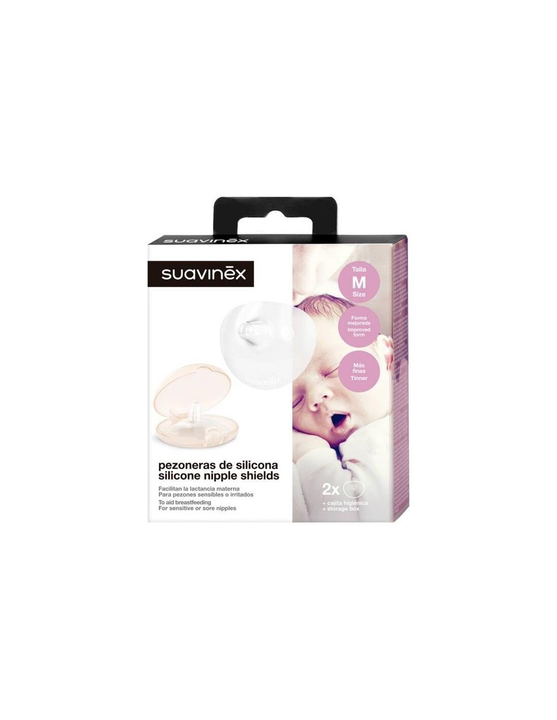 SUAVINEXLas pezoneras de silicona ayudan a continuar con la lactancia materna a pesar de sufrir molestias o irritaciones en el pezón. Pueden utilizarse en aquellos casos en los que las madres tienen los pezones planos, retraídos o invertidos, ya que se acoplan perfectamente al seno facilitando el agarre y la succión del recién nacido.