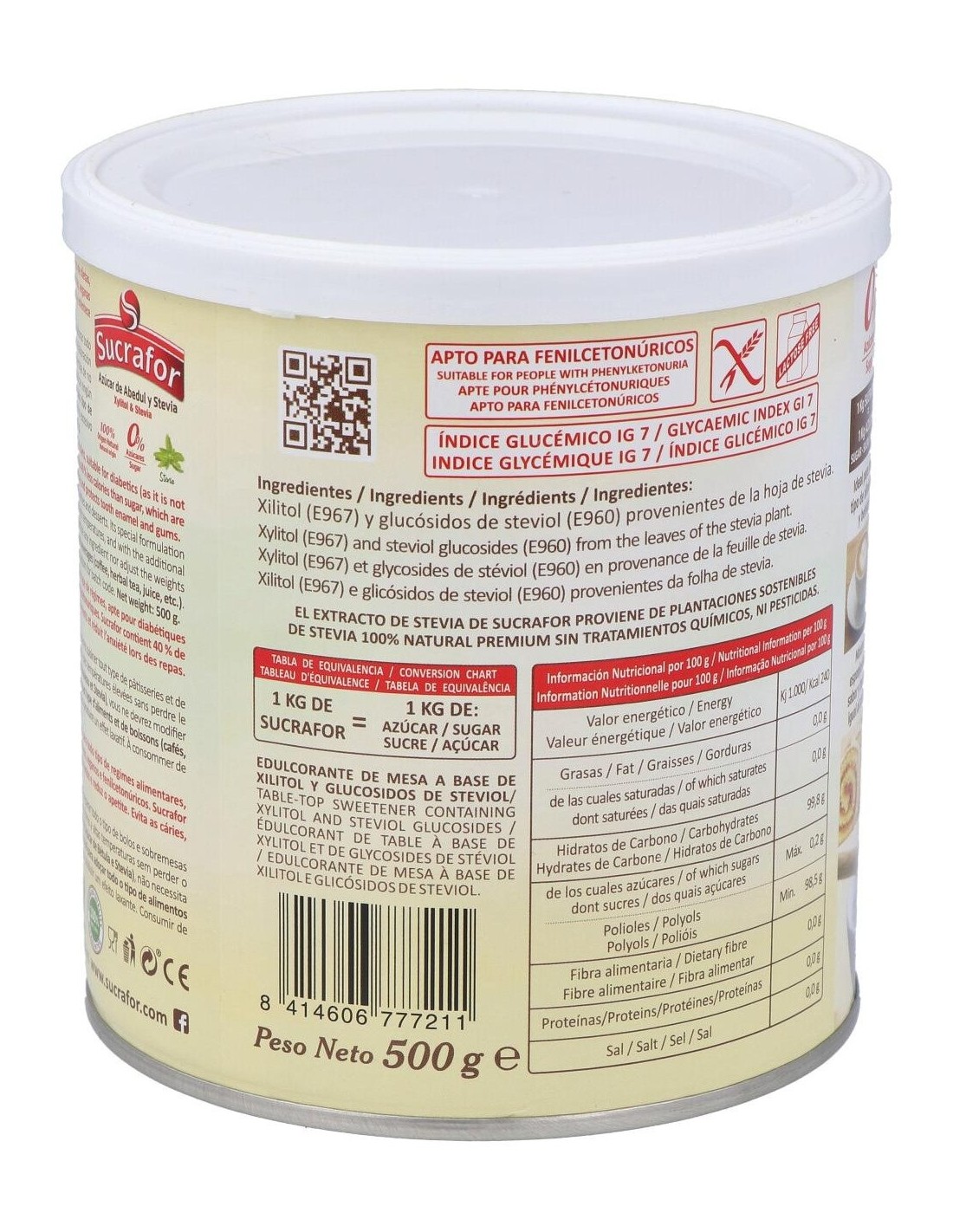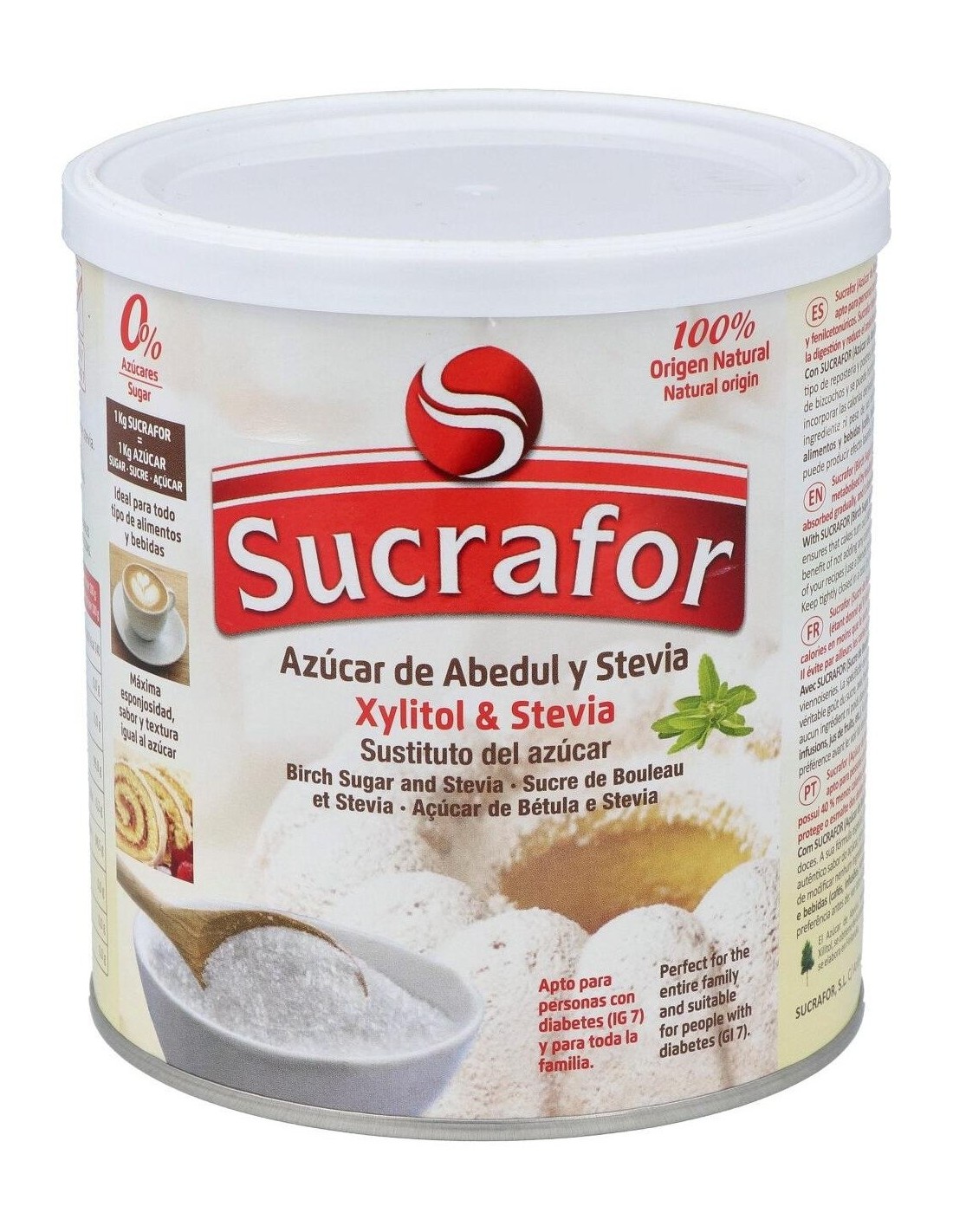 SUCRAFORIdeal para toda la familia y dietas de control de peso. Apto para personas con diabetes e ideal para una vida sana. Evita las caries y protege el esmalte de los dientes y las encías.