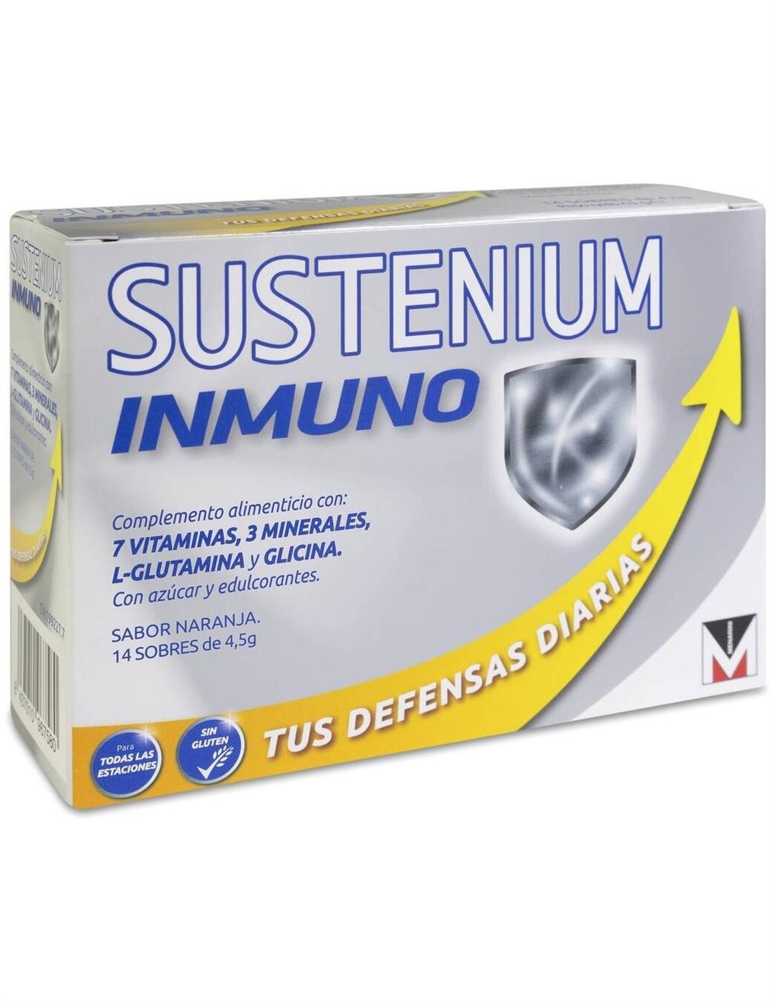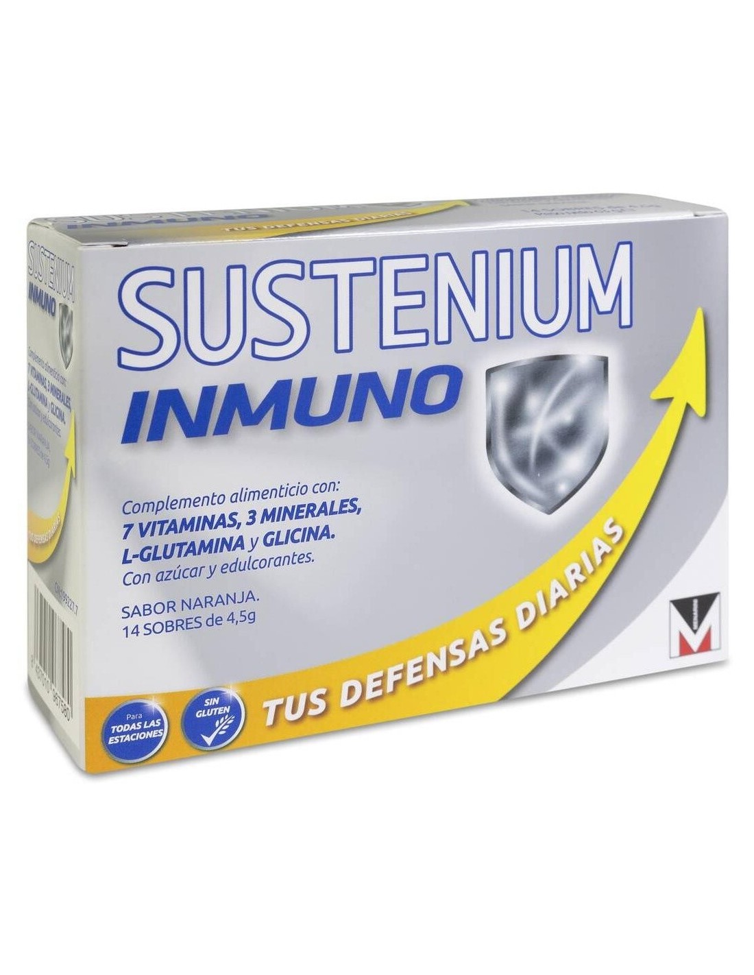 SUSTENIUMContiene vitaminas B1, B2, B6 y B12, Ácido pantoténico, Niacina, Vitamina C, Cobre, Zinc, Manganeso, Glutamina y Glicina. El Zinc, el Cobre, las vitaminas C, B6 y B12 contribuyen al funcionamiento normal del sistema inmunitario. Las vitaminas B1, B2, B6 y B12, el Ácido pantoténico y la Niacina ayudan al metabolismo energético normal. El Cobre, el Zinc, el Manganeso y las vitaminas C y B2 contribuyen a la protección de las células contra el daño oxidativo. Sabor naranja.