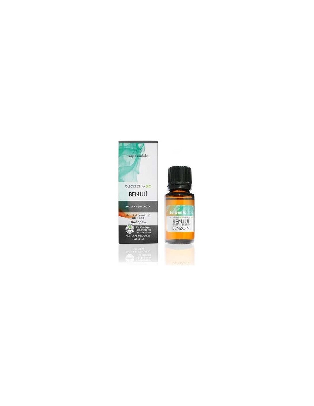 Terpenic Aceite Esencial Benjui Oleorresina Bio 10ml es un aceite esencial que proviene del árbol Oleorresina Benjuí y se obtiene mediante incisiones hechas en el tronco de las cuales brota un líquido tipo resina. Al ser destilado, da como resultado este producto de textura aceitosa. Cuenta con propiedades cicatrizantes, además de ayudar a proporcionar elasticidad a la piel. Posee también propiedades antibacterianas y ayuda en los procesos que permiten tranquilizar el sistema nervioso, disminuye tensiones en el organismo y la irritabilidad.