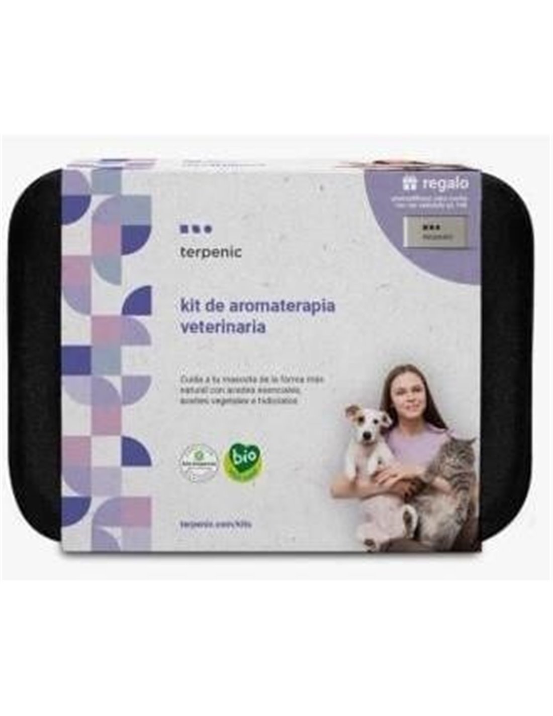 TERPENICKit de aromaterapia veterinaria para elaborar dos sprays repelentes, uno para perros y otro para gatos, dos bálsamos, uno protector y reparador para almohadillas y trufa y otro para aplicar en pequeñas heridas, arañazos o irritaciones. También, una solución limpiadora y, dos sinergias relax, una para difusión atmosférica y otra de aplicación tópica, que acompañan a atravesar los momentos de estrés junto a las mascotas, de la manera más saludable, pura y natural.\ Contenido:\ 4 aceites esenciales:\ -Árbol del té BIO\ -Citronela de java BIO\ -Verbena exótica BIO\ - Lavanda BIO\ 1 base vegetal:\ -Albaricoque\ 2 hidrolatos:\ - Árbol del té BIO\ -Geranio BIO\ 2 Mantecas:\ -Karité BIO\ Materiales:\ - 4 etiquetas\ -2 Envases spray de 50 ml\ Guía práctica del kit con cápsulas de video para utilizar los productos de manera segura para los animales, dueños y el medio ambiente.\ Fichas técnicas descargables de los 4 aceites esenciales, los 2 hidrolatos y los 2 bases vegetales, en las cuales se explican sus propiedades, así como consejos prácticos de uso.\ Aroma difusor Run run para el coche de regalo.