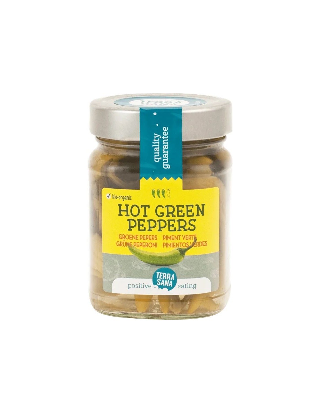 TERRASANAIngredientes:Pimientos verdes picantes* (Grecia), agua, sal (Grecia), regulador de la acidez: ácido cítrico (Bélgica), vinagre de vino blanco* (Italia