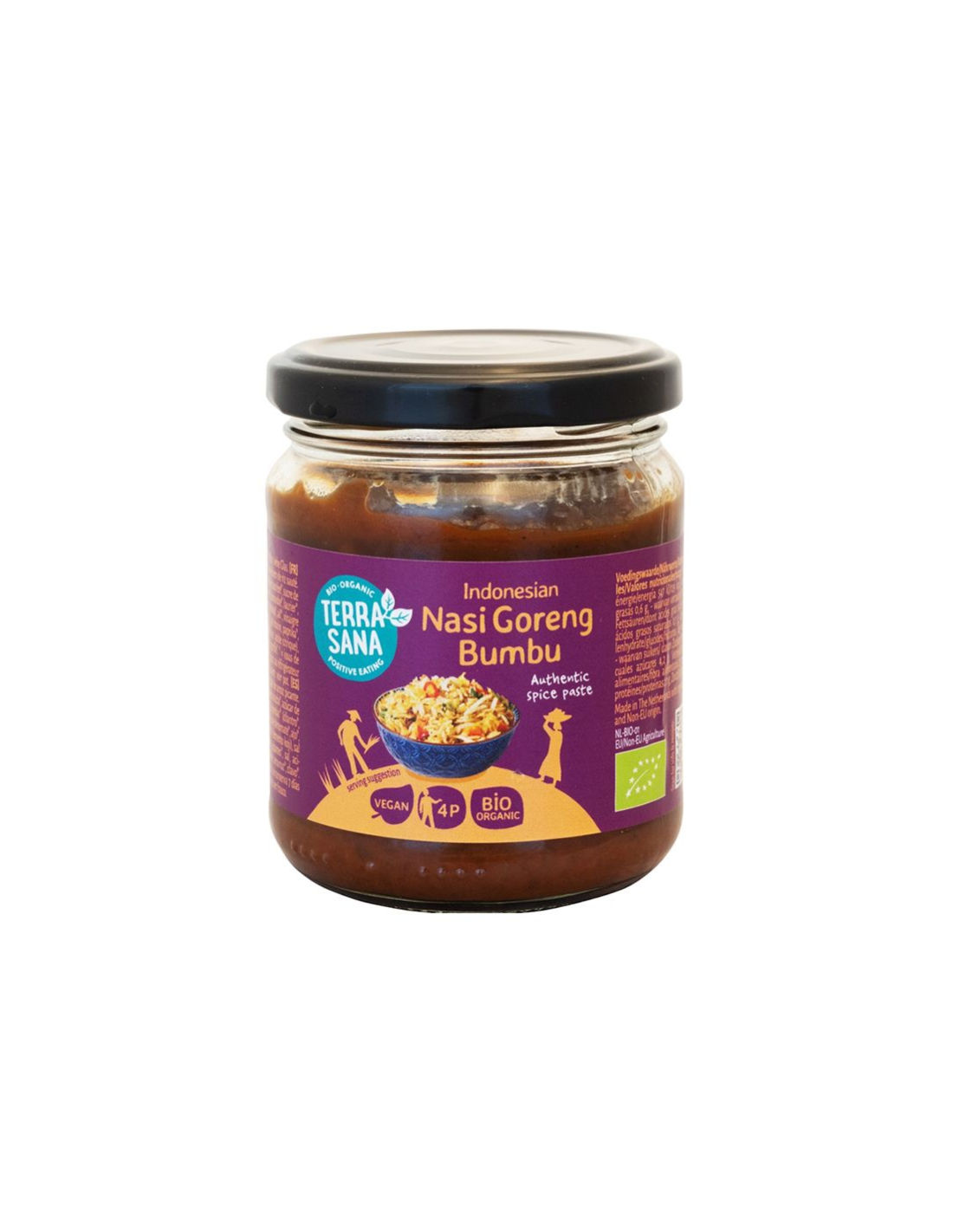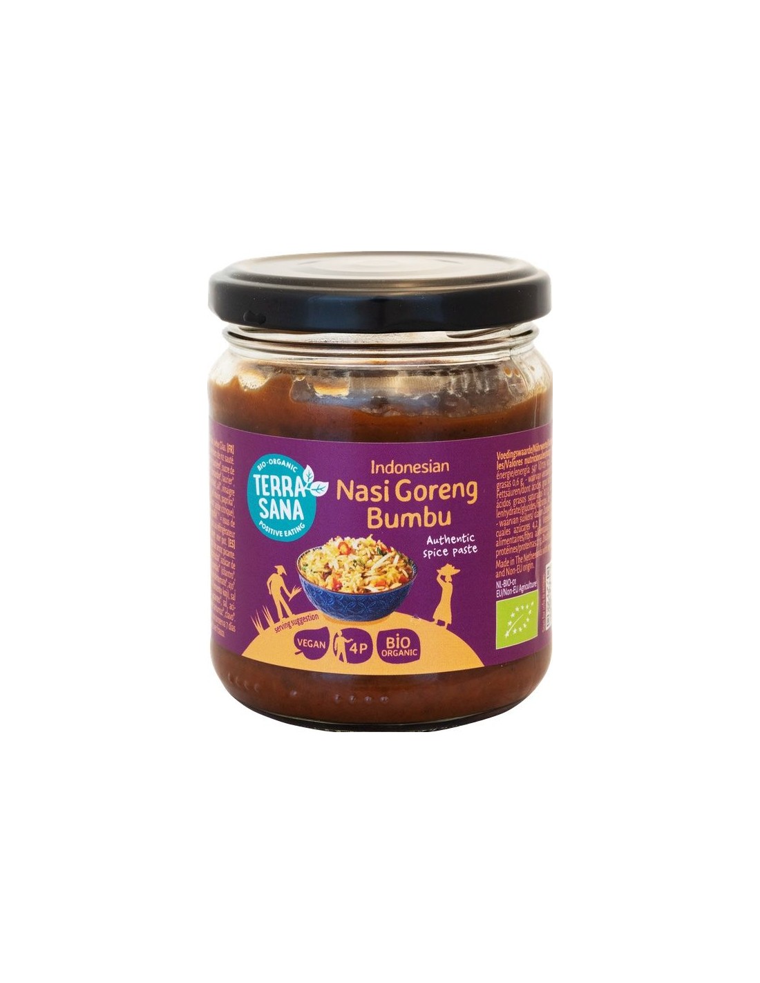TERRASANAVocê gosta de comida indonésia, mas não tem o conhecimento de temperos necessário para colocar um verdadeiro nasi goreng na mesa? Não te preocupes! Este bumbu indonésio para nasi goreng é cheio de sabor, é completamente vegano, porque não contém trassi (pasta de camarão), como a maioria das pastas de especiarias para nasi goreng. Ah, e também é orgânico e autenticamente indonésio. Água (Holanda), Cebola* (Egito), Molho de Soja* (Xarope de Beterraba*, Açúcar de Coco*, Sumo de Semente de SOJA*, Água, Sal Marinho, Especiarias*, Coentro*, Folha de Louro*, Erva-cidreira*) (O Holanda), açúcar de flor de coco* (Indonésia), extrato de tomate* (Itália), alho* (Egito), vinagre de sushi* (água, arroz integral*, marinada de sal, fermento de koji) (Japão), sal marinho (Portugal), pimenta* (Espanha), sambal oelek* (pimenta vermelha picante*, sal, acidulante: ácido cítrico) (Itália), pimenta branca* (Sri Lanka), espessante: araruta* (Índia), cravo* (Sri Lanka) * = da agricultura orgânica
