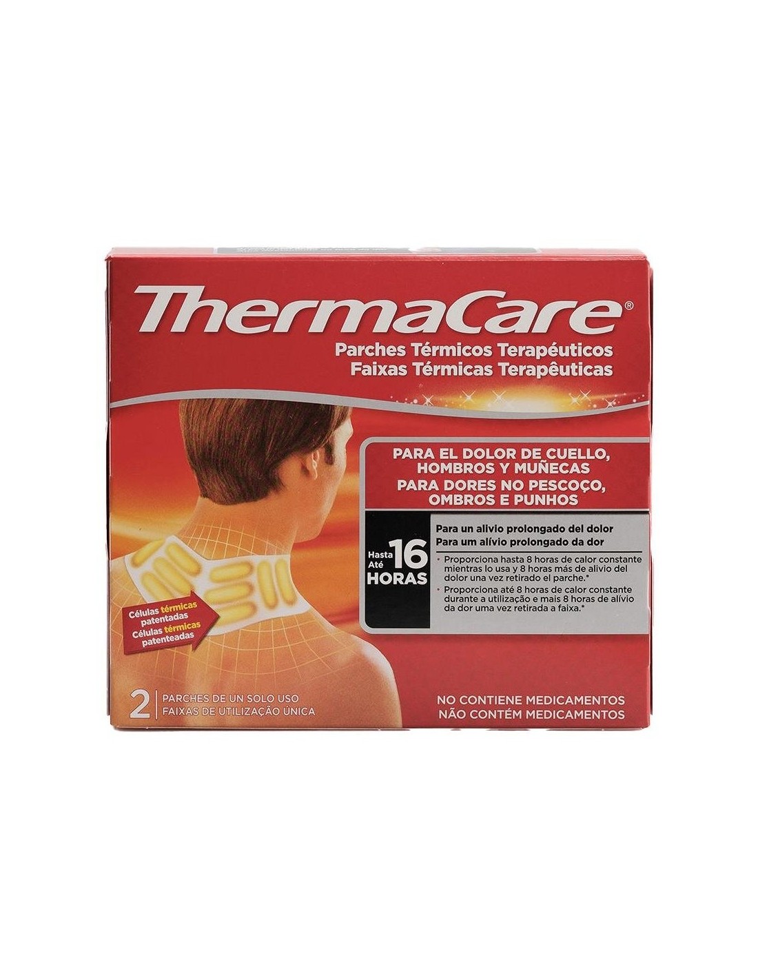 THERMACAREThermaCare® cuello, hombros y muñecas está indicado para tratar el dolor muscular y articular inespecífico en las zonas del cuello, los hombros y las muñecas. Los parches están constituidos por 10 células de calor patentadas y tienen una forma ergonómica para adherirse perfectamente a la piel a través de dos zonas adhesivas. Proporciona alivio prolongaodo durante 16 horas. Esto es, 8 horas mientras se lleva puesto y 8 horas adicionales después de quitárselo.