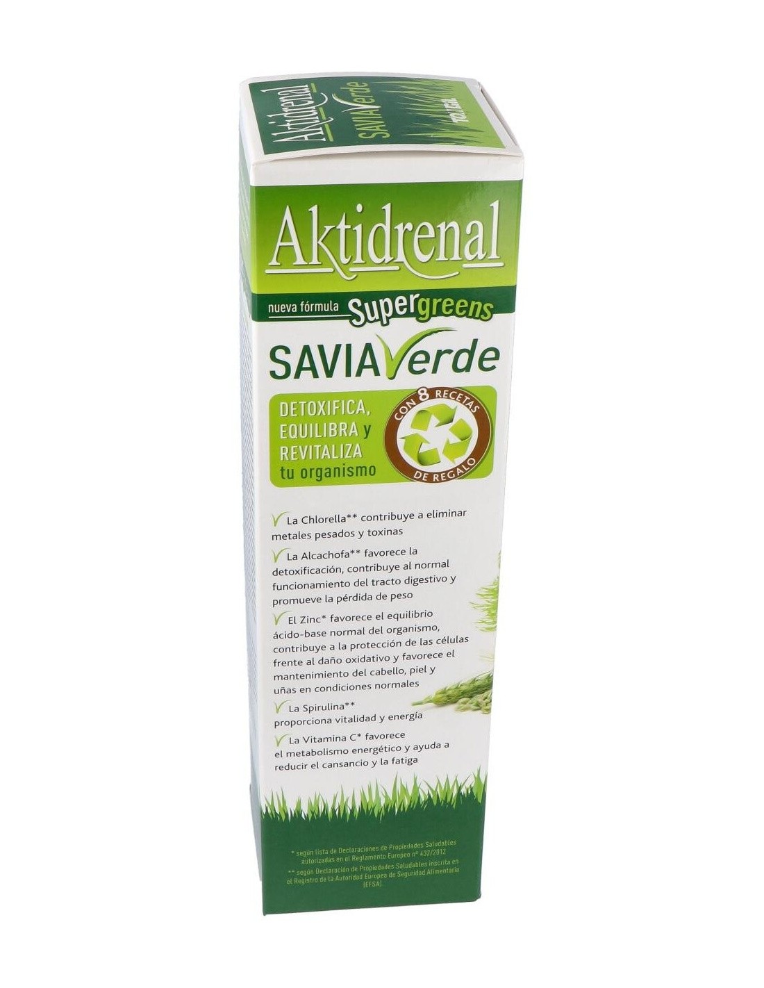 Es un complemento alimenticio a base de algas espirulina y chlorella, germinados verdes, extractos concentrados de plantas y frutas, vitaminas y minerales. La Chlorella contribuye a eliminar metales pesados y toxinas y favorece el normal funcionamiento del hígado y riñones. La Alcachofa favorece la detoxificación, contribuye al normal funcionamiento del tracto digestivo y promueve la pérdida de peso. El Zinc favorece el equilibrio ácido-base normal del organismo, contribuye a la protección de las células frente al daño oxidativo y favorece el mantenimiento del cabello, piel y uñas en condiciones normales. La Spirulina supone un aporte aminoácidico y proporciona vitalidad y energía. La Clorofila favorece la producción de hemoglobina. La Cola de Caballo favorece la remineralización del organismo. La Vitamina C favorece el metabolismo energético y ayuda a reducir el cansancio y la fatiga.