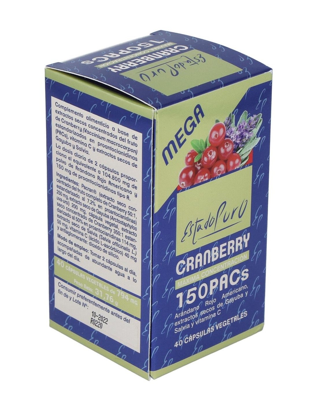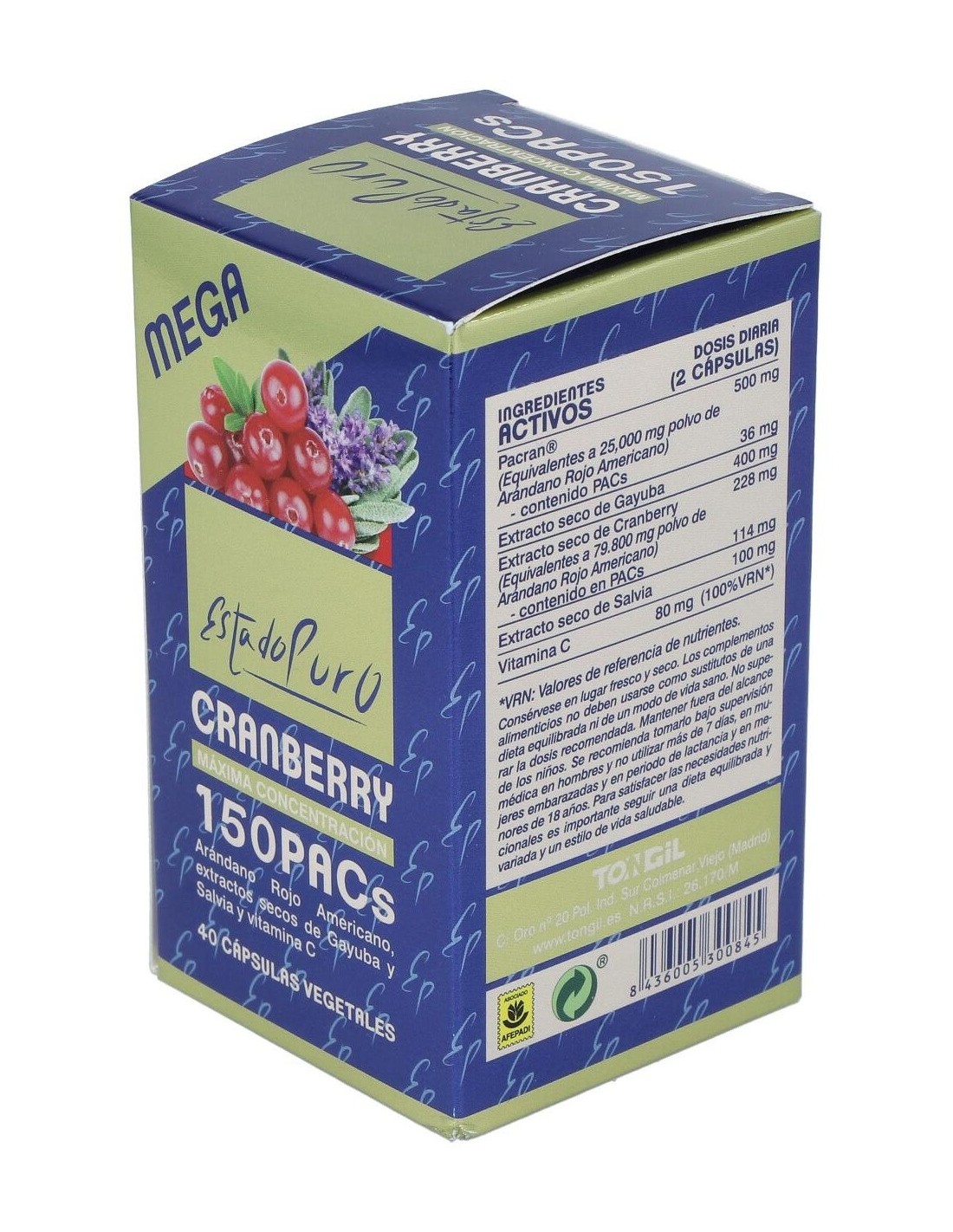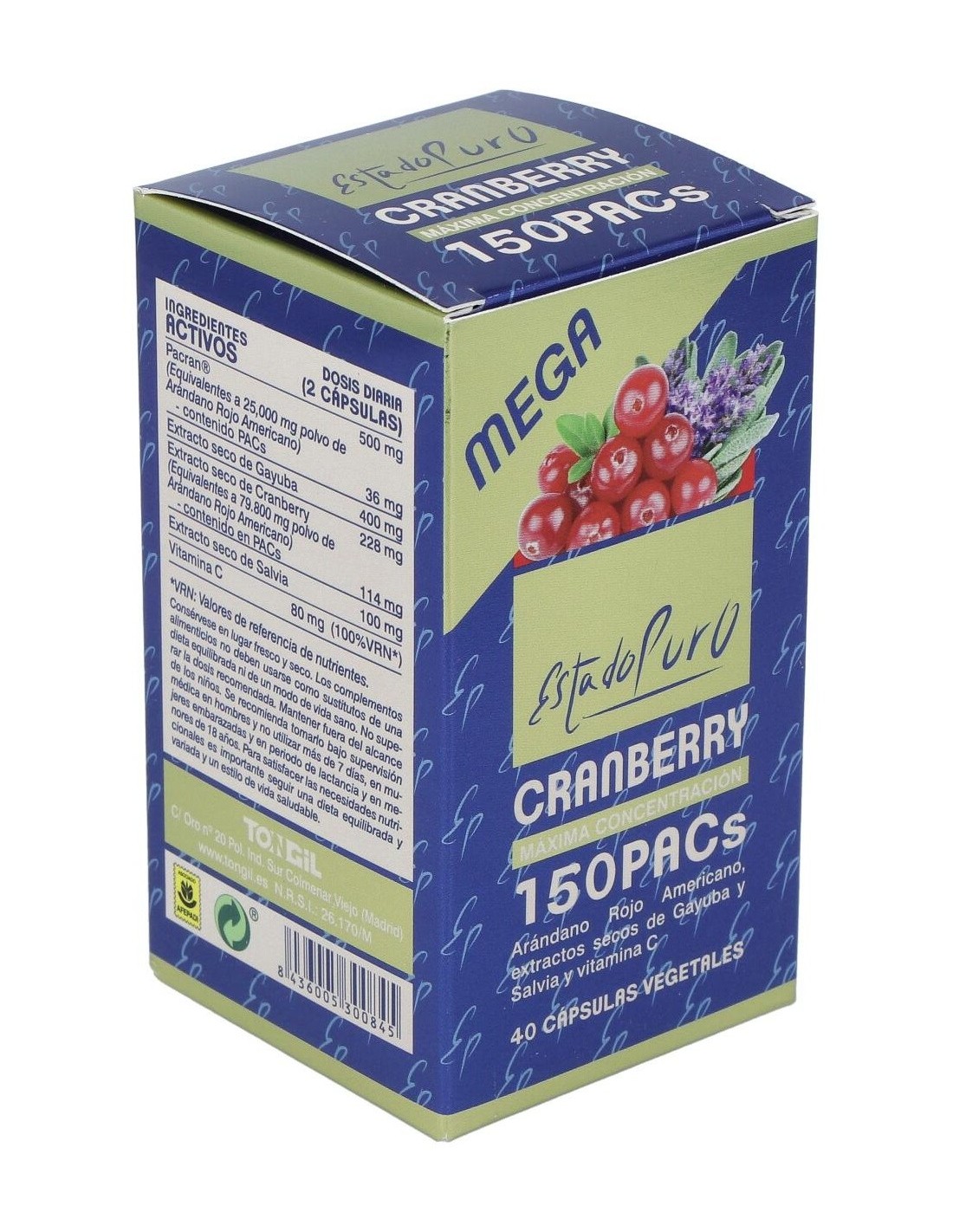 Cranberry Mega150 Pacs 40Cap. Estado Puro de Tongil