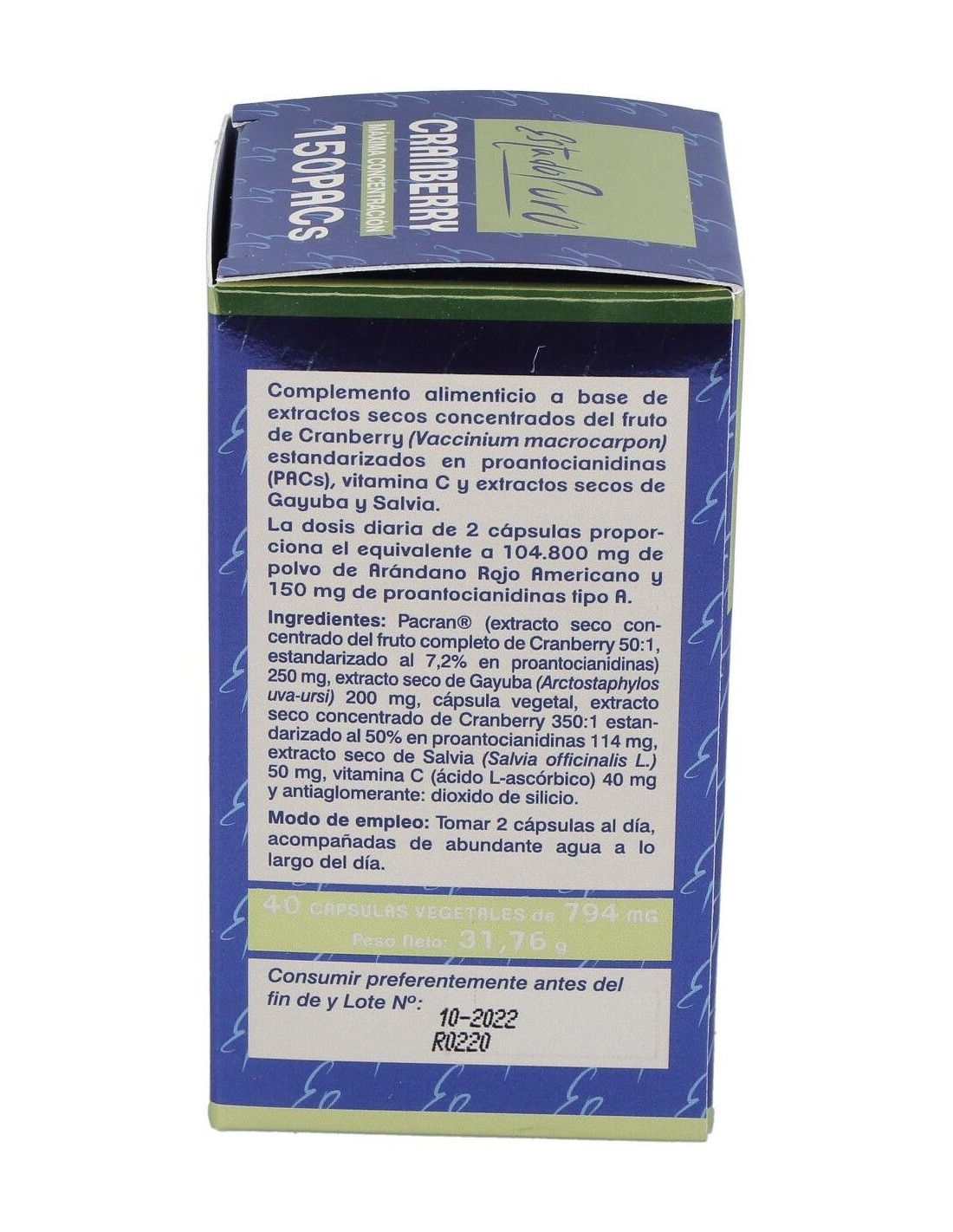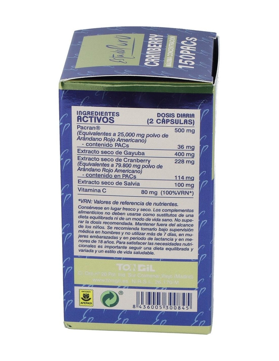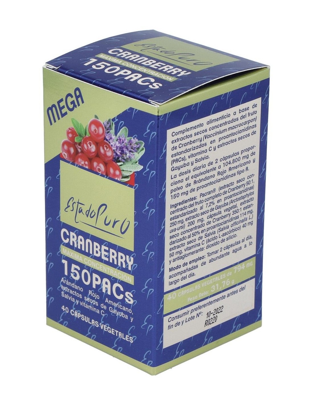 Cranberry Mega150 Pacs 40Cap. Estado Puro de Tongil