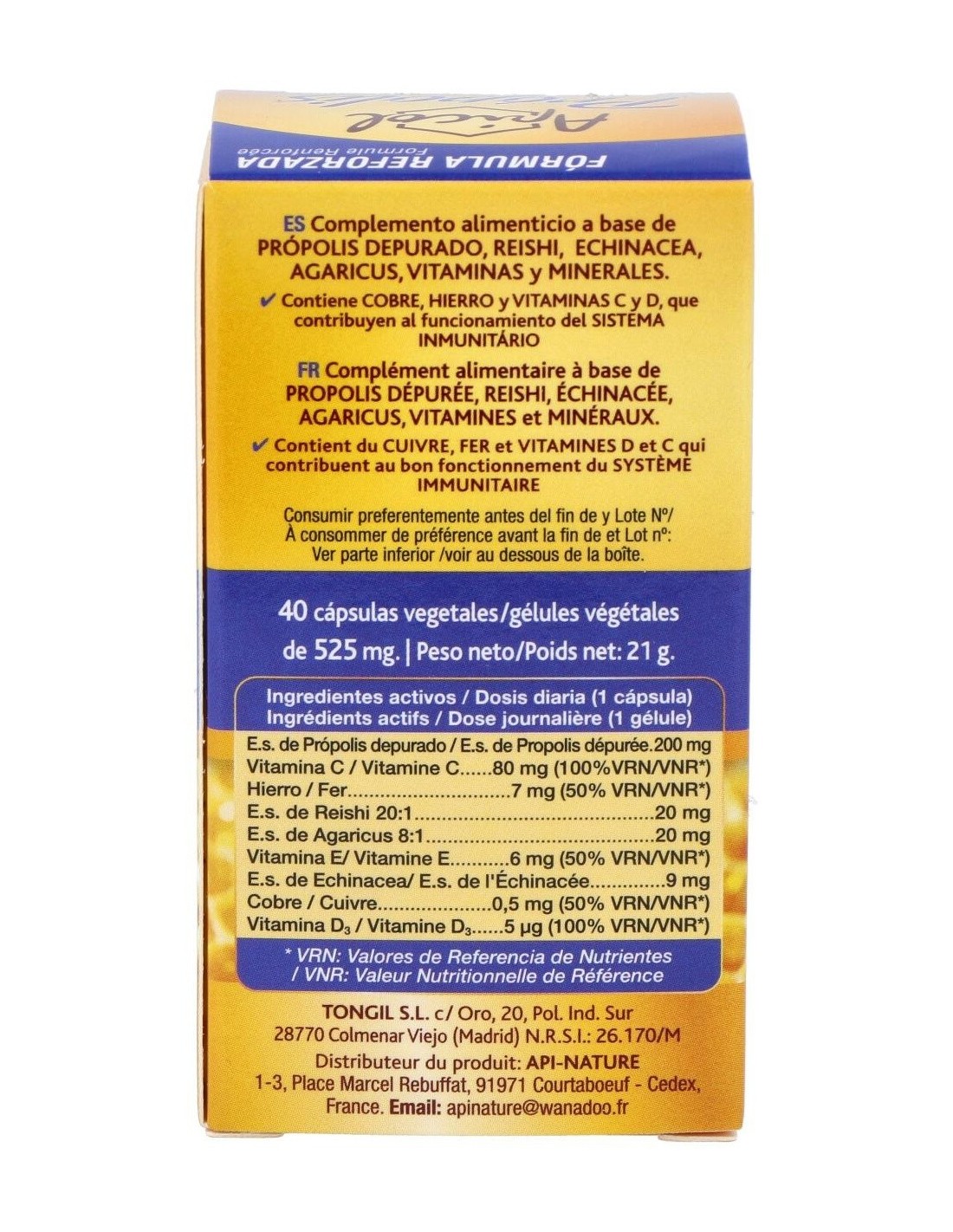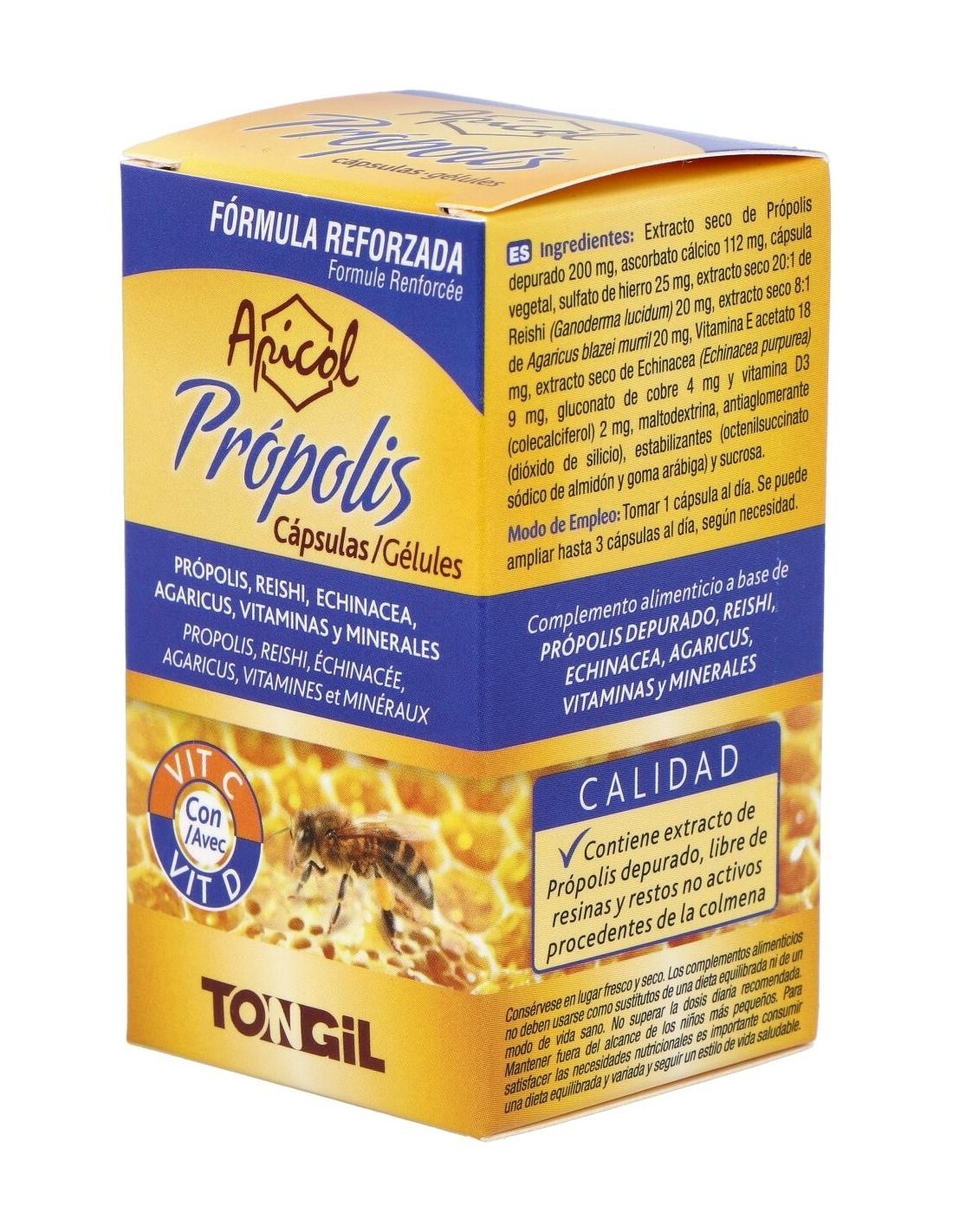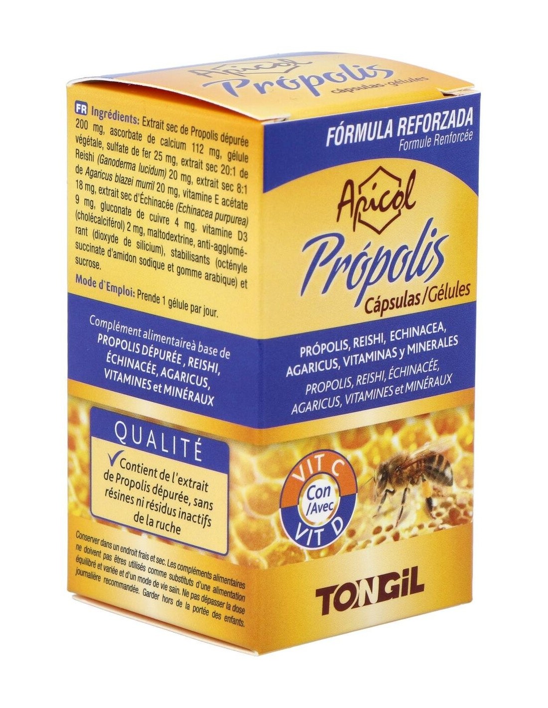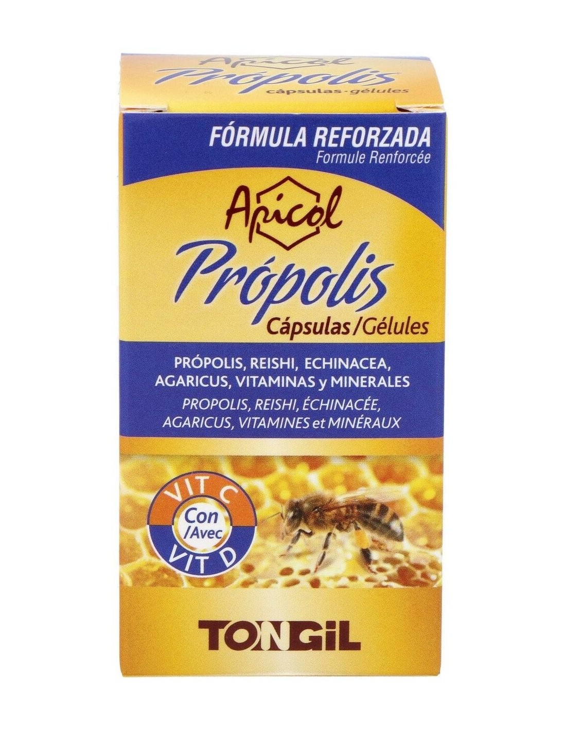 Apicol Própolis es un complemento alimenticio que contribuye a mejorar el funcionamiento del sistema inmunitario, aumentando las defensas naturales del organismo y evitando el desarrollo de parásitos, hongos y bacterias.