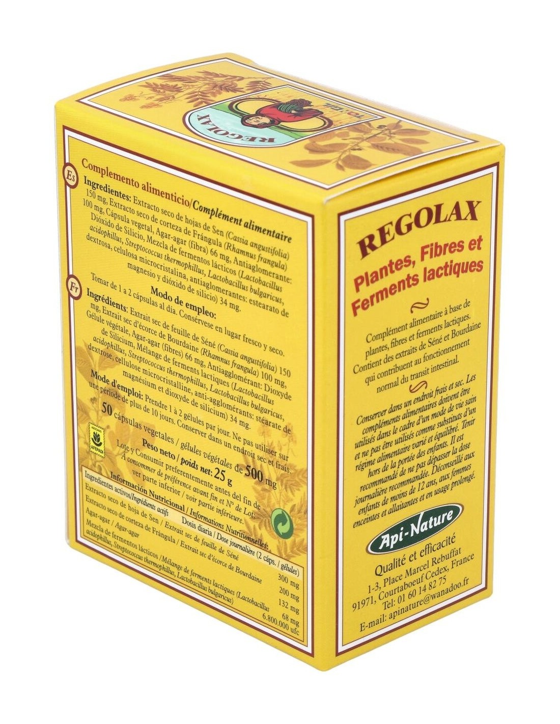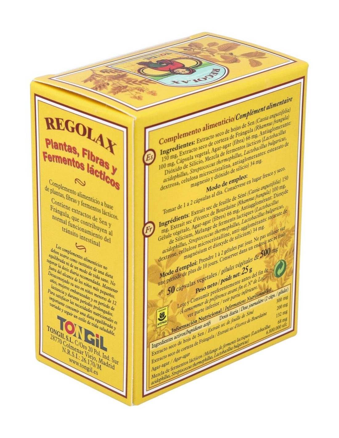 Tomar de 1 a 2 cápsulas diarias después de cenar o antes de acostarse, según necesidad, hasta regular el tránsito intestinal. Se aconseja beber bastante agua o zumos durante el día, así como incluir paulatinamente fibra vegetal en la alimentación (pan integral, salvado, etc...), hasta que finalmente el uso del producto no sea necesario.