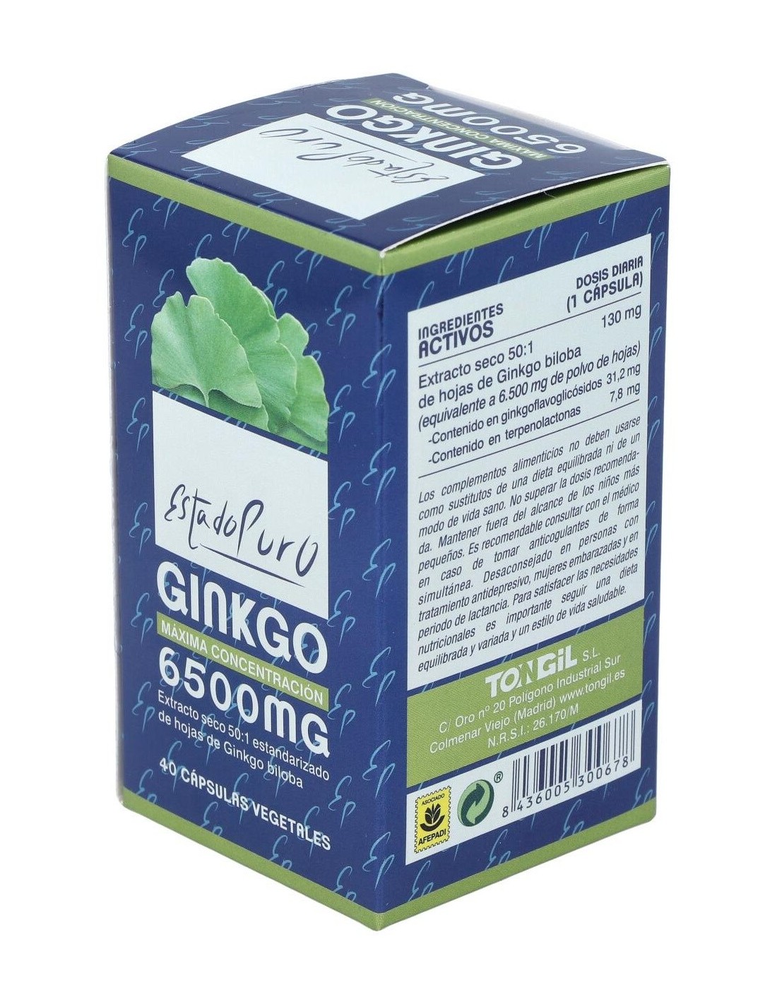Ginkgo 6500Mg. 40Cap. Estado Puro de Tongil