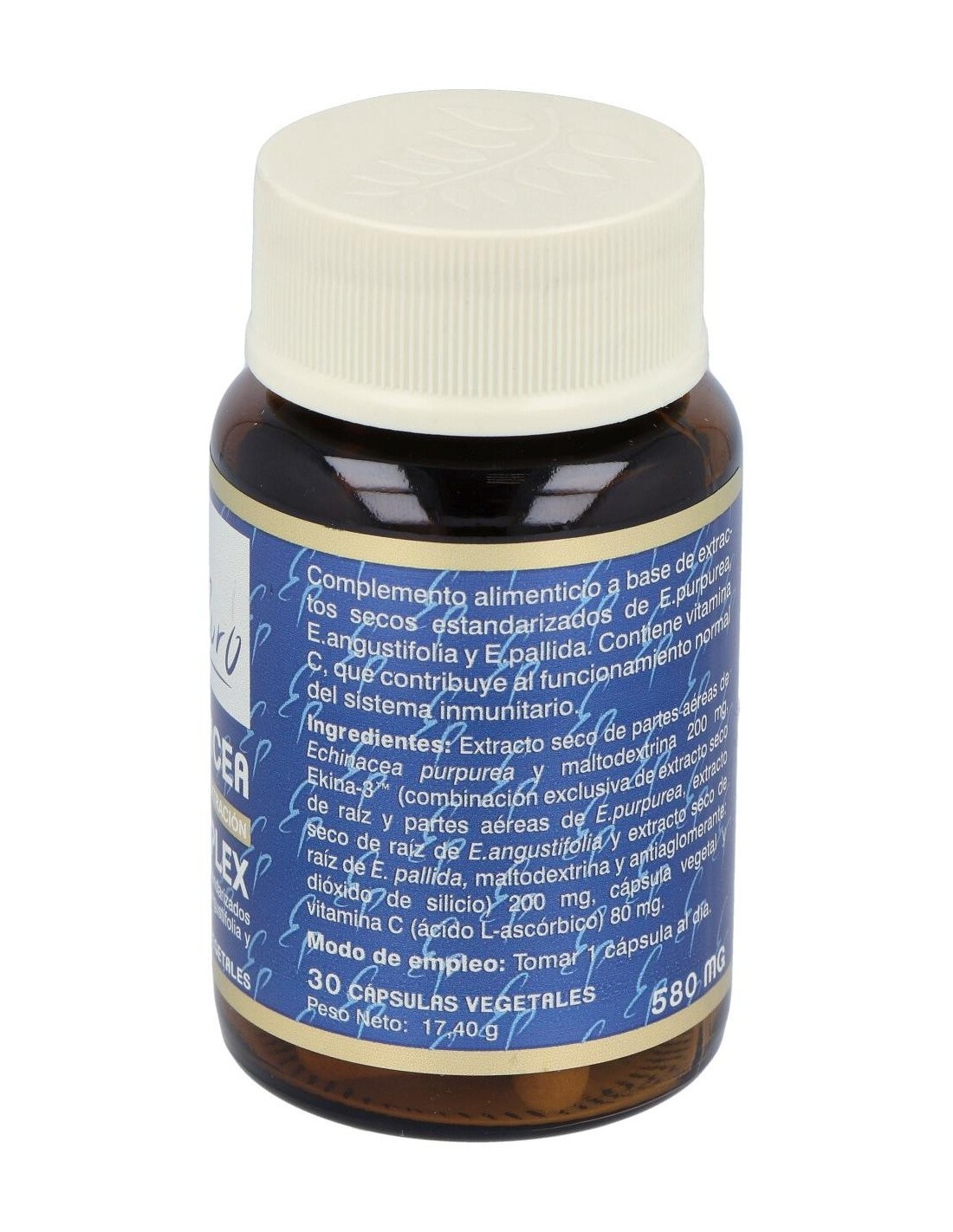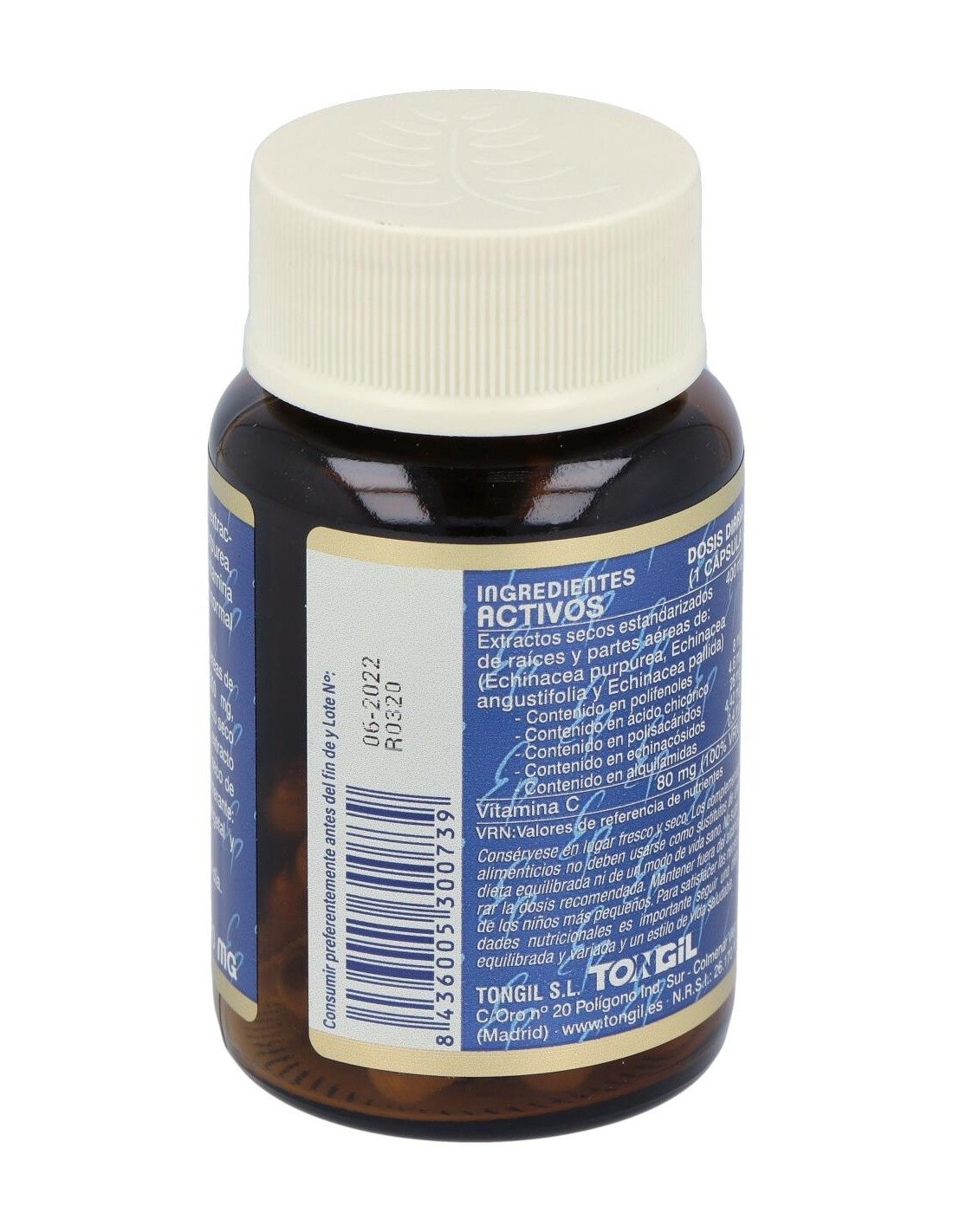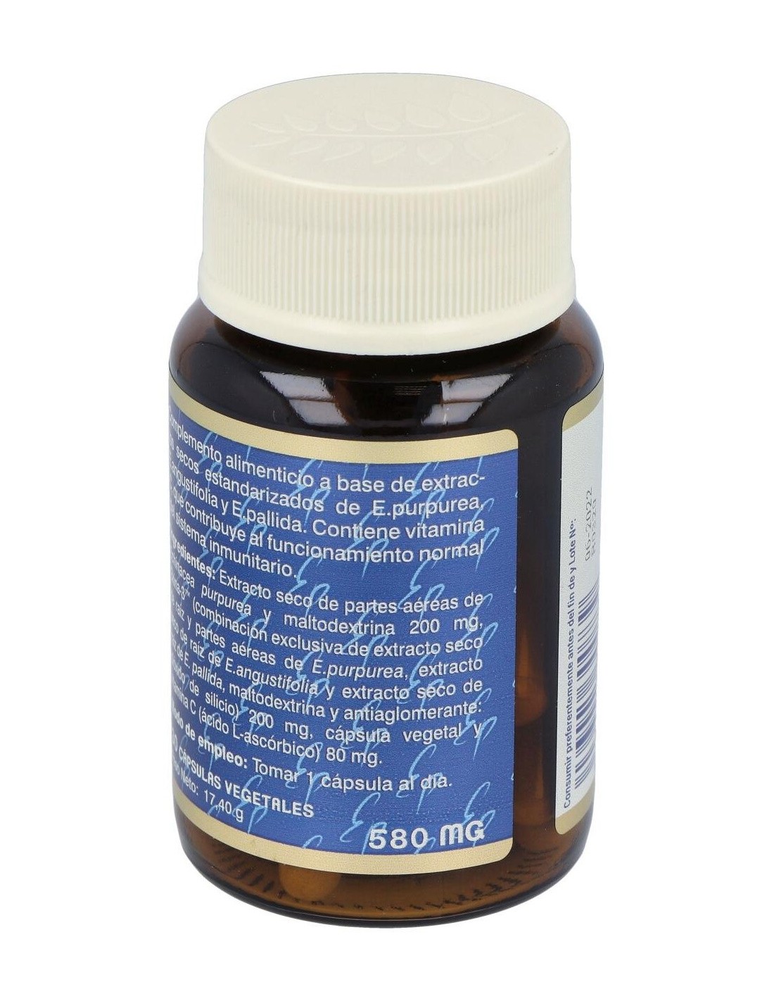 Es un complemento alimenticio indicado para modular la respuesta inmune frente al virus y bacterias patógenas. La Echinácea favorece las defensas del cuerpo. La vitamina C contribuye al funcionamiento del sistema inmune. integra en una sola cápsula las tres especies diferentes de Echinácea con propiedades terapéuticas: purpúrea, angustifolia y pallida. La sinergia de estas tres especies aporta el efecto combinado de los principios activos específicos de cada una de ellas, cubriendo de esta forma todo el espectro de propiedades de la especie Echinácea.