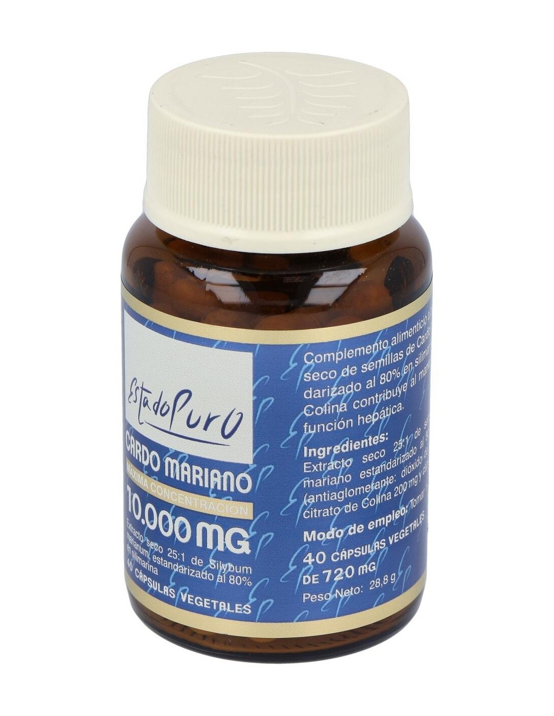 Es un complemento alimenticio en cápsulas elaborado a base de extracto seco concentrado de semillas de cardo mariano (Silybum marianum). El cardo mariano es una planta usada desde hace más de 2.000 años por sus propiedades medicinales. Esta planta se utiliza para elaborar remedios para los trastornos del hígado. La silimarina, es una sustancia que se extrae de las semillas del cardo mariano y es el principal principio activo de esta planta. El Cardo mariano de Estado Puro se caracteriza por la máxima concentración en principios activos, alcanzando un ratio 25:1 con respecto a la planta fresca. Está estandarizado al 80% en silimarina, compuesto exclusivo del cardo mariano, y responsable de sus efectos.