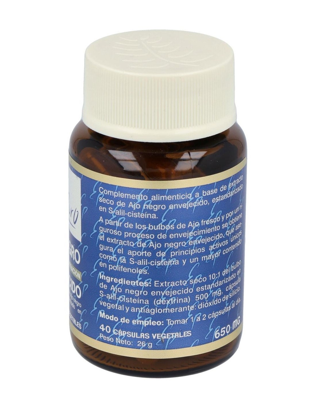 Las propiedades exclusivas del Ajo Negro Envejecido se deben al proceso de envejecimiento, en el que se produce una conversión de las sustancias presentes en el ajo fresco, como la alicina, en otros derivados azufrados más estables y activos como la S-Alil-Cisteína. El ajo envejecido contribuye a mantener en condiciones normales el corazón y los niveles de colesterol.