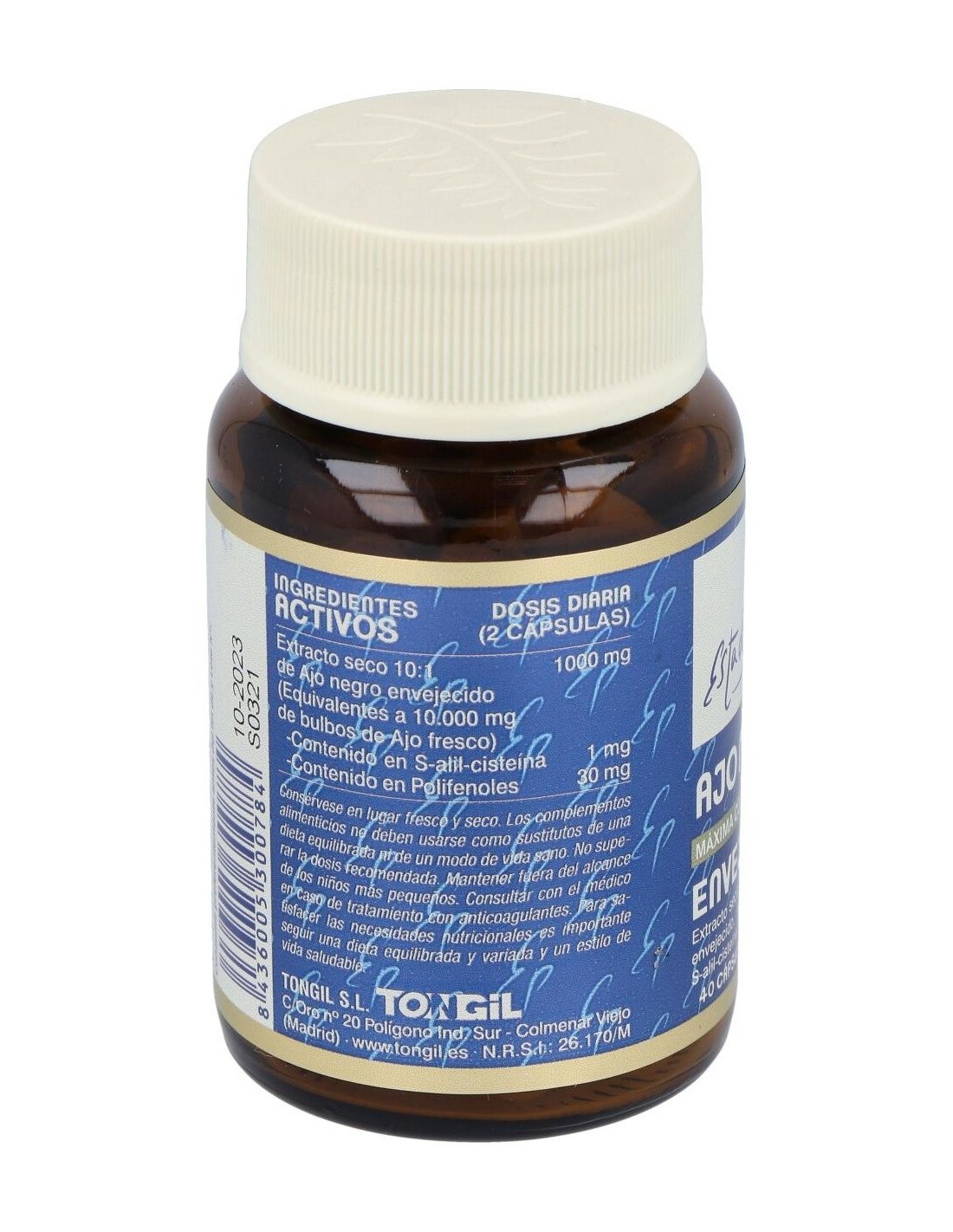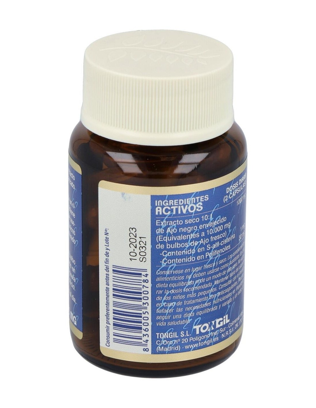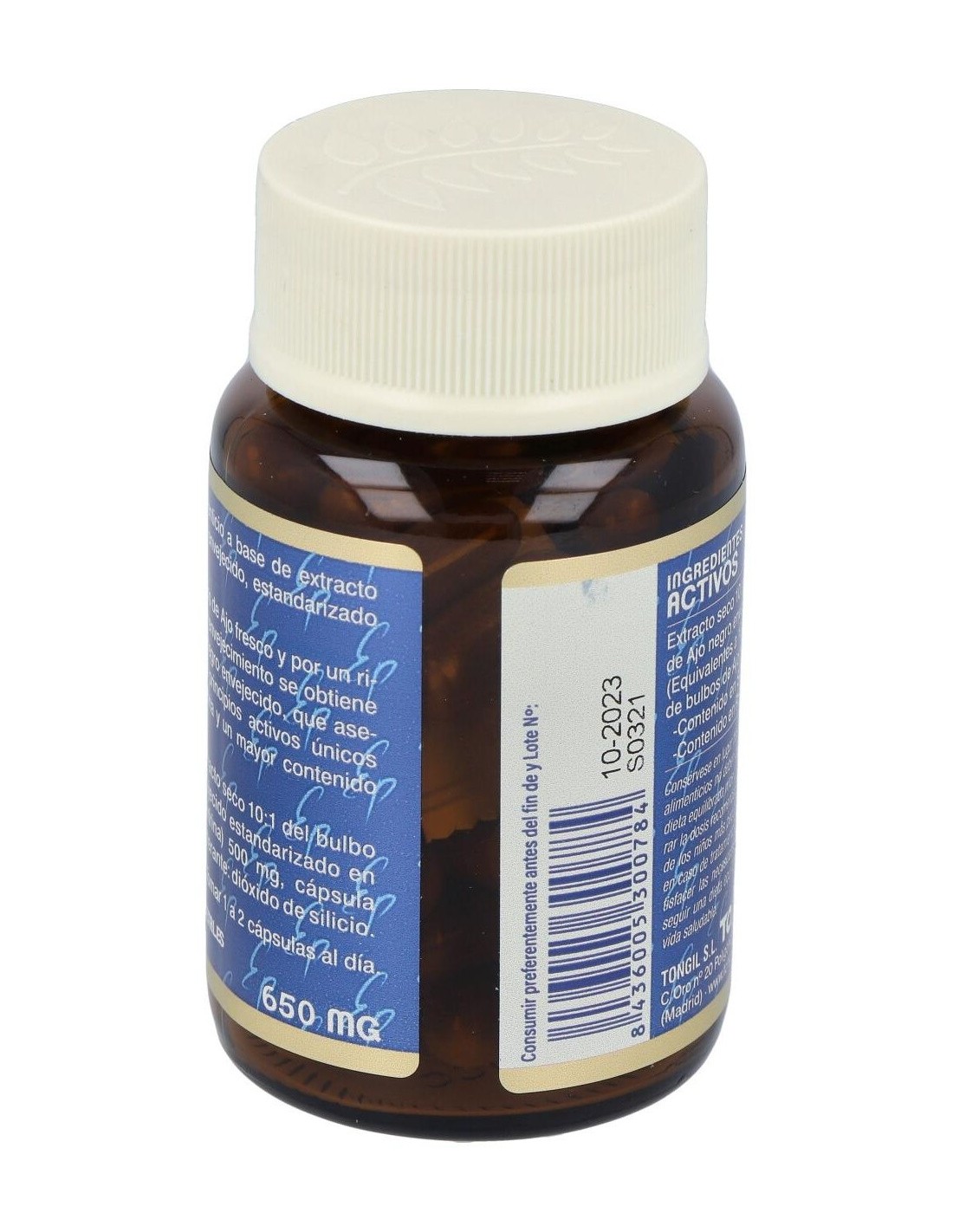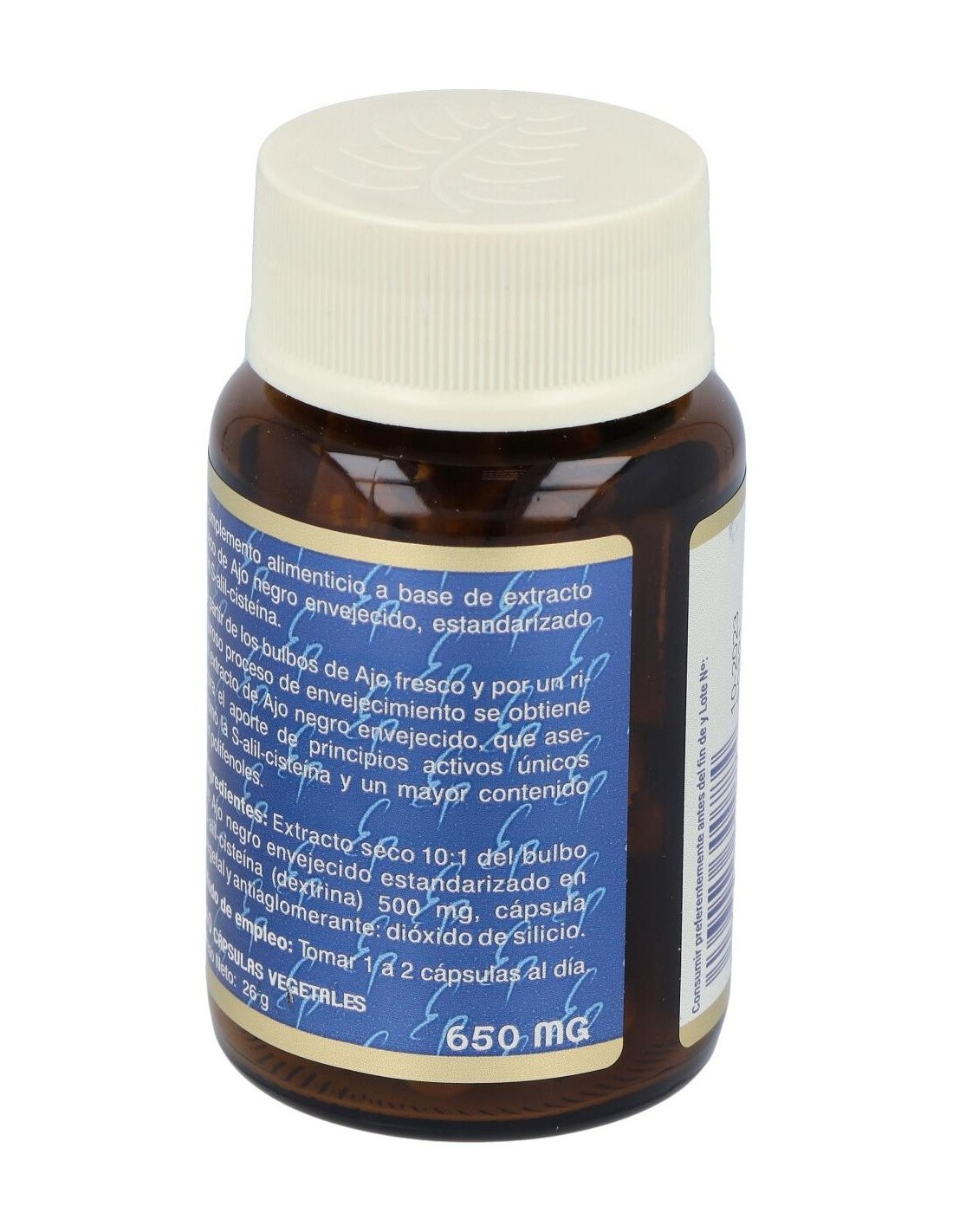 Extracto seco 10:1 de Ajo negro envejecido (Equivalentes a 5.000 mg de bulbos de Ajo fresco).............................................500 mg