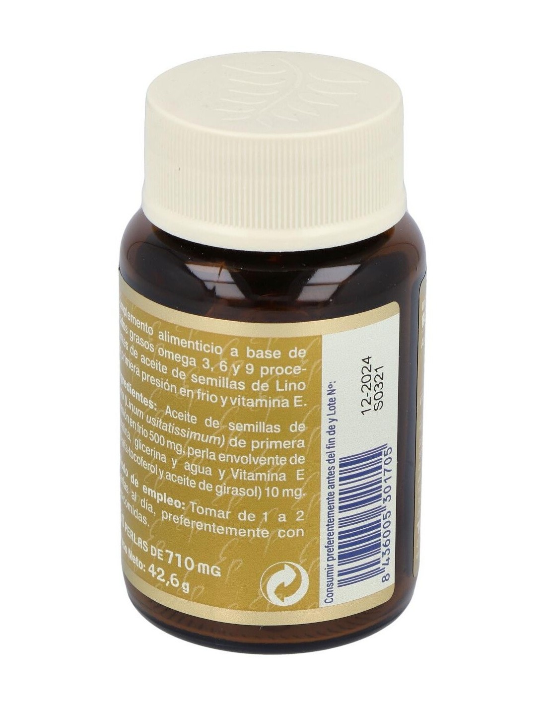 Suplemento a base de ácidos grasos omega 3, 6 y 9 procedentes de aceite de semillas de Lino de primera presión en frío y vitamina E.
