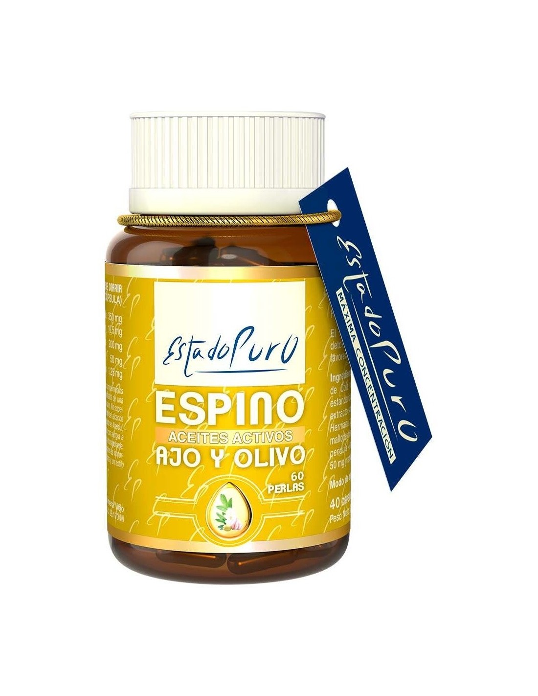 Tongil Estado Puro Espino 1200mg 60perlas es un complemento alimenticio que contribuye a mejorar y regular la tensión. Tiene unas muy buenas propiedades, al ser un un regulador de la tensión arterial, antiespasmódico y sedante del sistema nervioso.