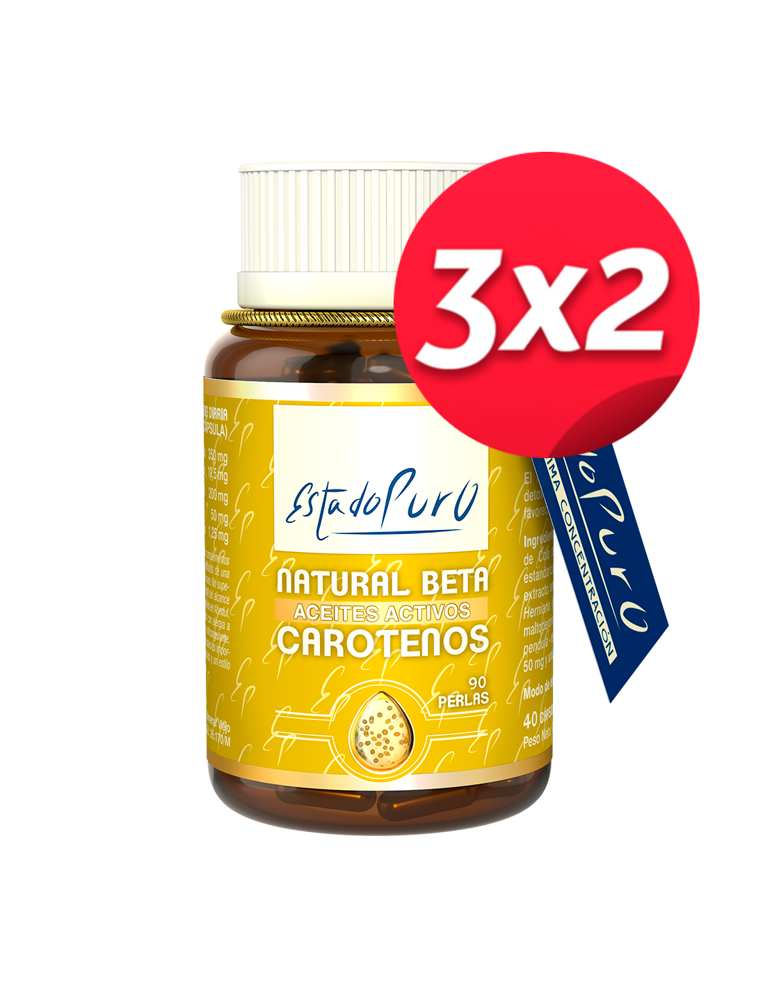 Pack 3x2 Natural Betacaroteno Aceites Activos 90 Perlas de Tongil
