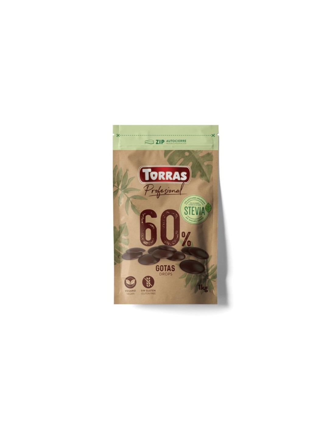 Gotas De Chocolate Negro 60% Con Stevia S/A, 200 G de Torras