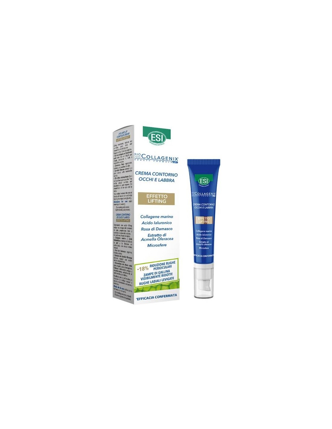 TREPATDIET-ESIContorno de ojos con función global, trata bolsas, ojeras y arrugas del contorno de ojos y labio con efecto lifting. Reduce las arrugas del contorno de ojos, proporciona hidratación y suavidad a la zona de los labios. Combina Colágeno marino y ácido hialurónico con un extracto de Acmella Oleracea que presenta una acción Botox like y un concepto innovador en el relleno de arrugas especialmente diseñado para rellenar instantáneamente las arrugas y las líneas finas de una manera más eficiente, Microesferas de efecto seda. Disminuye un -18% de reducción alrededor de los ojos, patas de gallo visiblemente reducidas, arrugas de labios suavizadas. Sin perfume, no graso, rápida absorción.