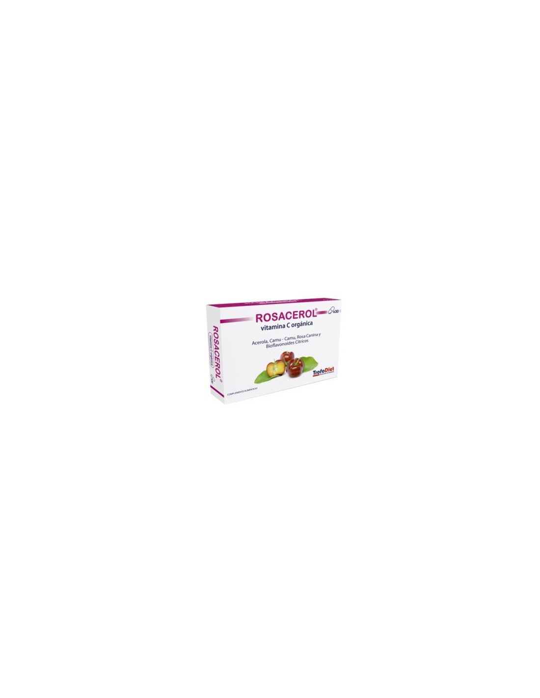 TROFODIETRosacerol es un producto 100 % natural que proporciona la dosis diaria recomendada de Vitamina C orgánica junto a las otras sustancias presentes de forma natural en el extracto de Acerola, Camu - Camu, Rosa Canina y Bioflavonoides cítricos. Estas sustancias contribuyen a una biodisponibilidad ideal de la Vitamina C y completan su poder antioxidante. La Vitamina C contribuye al funcionamiento normal del sistema inmunitario, a disminuir el cansancio y la fatiga, a la protección de las células frente al daño oxidativo y al funcionamiento normal del sistema nervioso.
