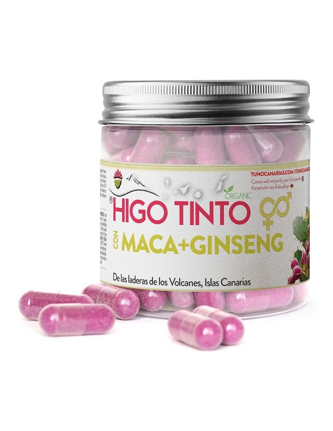 TUNO CANARIASEl Higo Tuno Canario HIGO-TINTO (Opuntia Dillenii) se cosecha en los barrancos y laderas bajo los volcanes. Crece en las hojas de los cactus Nopales traídos a Canarias hace siglos desde América donde ha sido un alimento básico durante miles de años. Un tesoro escondido de las Islas Rico en Fibra, Vitaminas B1, B2, B6, C, Potasio, Calcio, Magnesio Hierro y Zinc que ha sido usado en la medicina popular canaria y los pueblos indígenas americanos durante cientos de años. En este producto actúa en sinergia extracto estandarizado de Ginseng, que ayuda a mantener el rendimiento físico, la concentración y un rendimiento cognitivo, y maca.