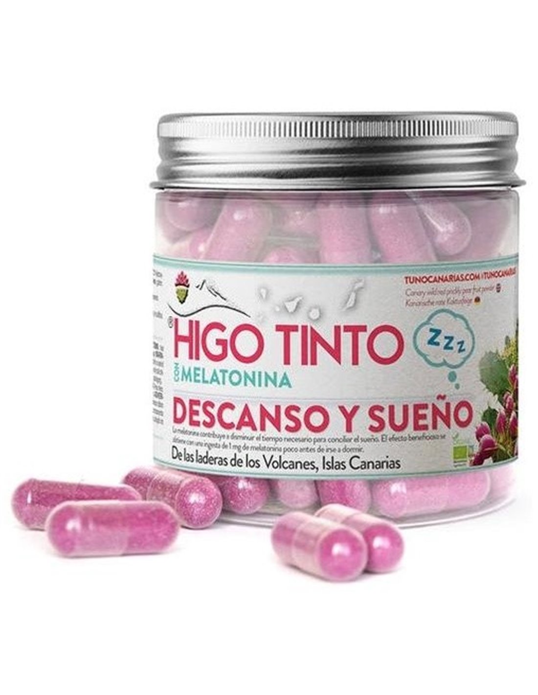 TUNO CANARIASEl Higo Tuno Canario HIGO-TINTO (Opuntia Dillenii) se cosecha en los barrancos y laderas bajo los volcanes. Crece en las hojas de los cactus Nopales traídos a Canarias hace siglos desde América donde ha sido un alimento básico durante miles de años. Un tesoro escondido de las Islas Rico en Fibra, Vitaminas B1, B2, B6, C, Potasio, Calcio, Magnesio Hierro y Zinc que ha sido usado en la medicina popular canaria y los pueblos indígenas americanos durante cientos de años. En este producto se combina con melatonina, la cual contribuye a reducir el tiempo necesario para conciliar el sueño.