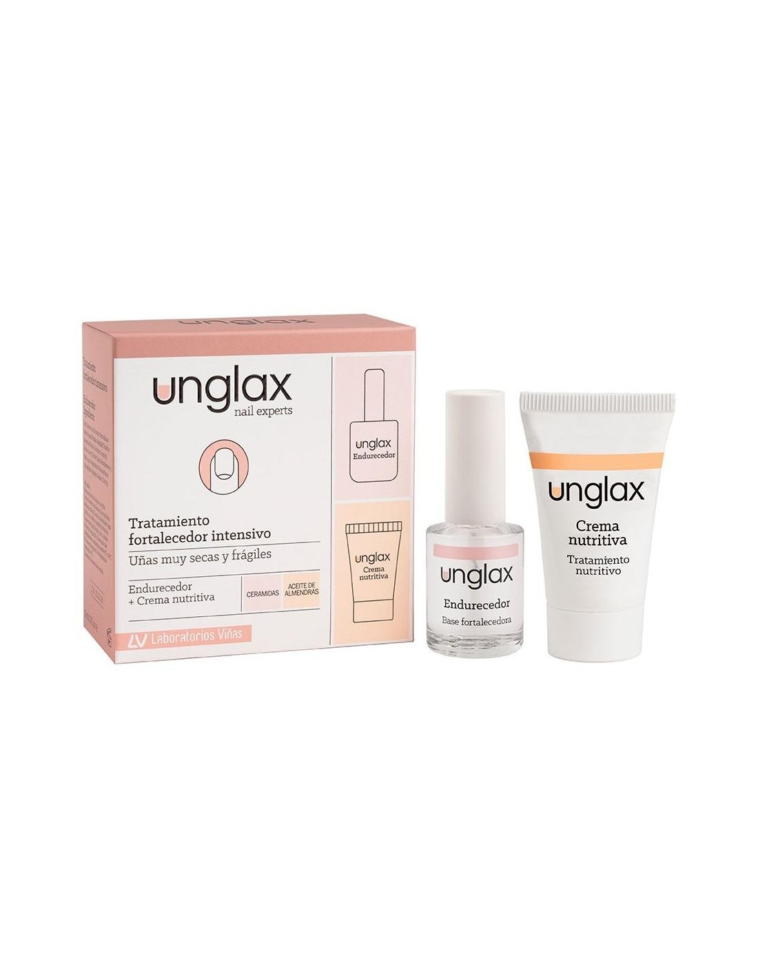 UNGLAXUNGLAX | Unglax tratamiento uñas crema 15ml + endurecedor 10mlLa manicura no solo consiste en perfilar y recortar las uñas a nuestro gusto, sino también en nutrir su estructura interna para que luzcan siempre bellas y con un aspecto saludable.Unglax Tratamiento Fortalecedor Intensivo es un kit de cuidado completo para tus uñas.