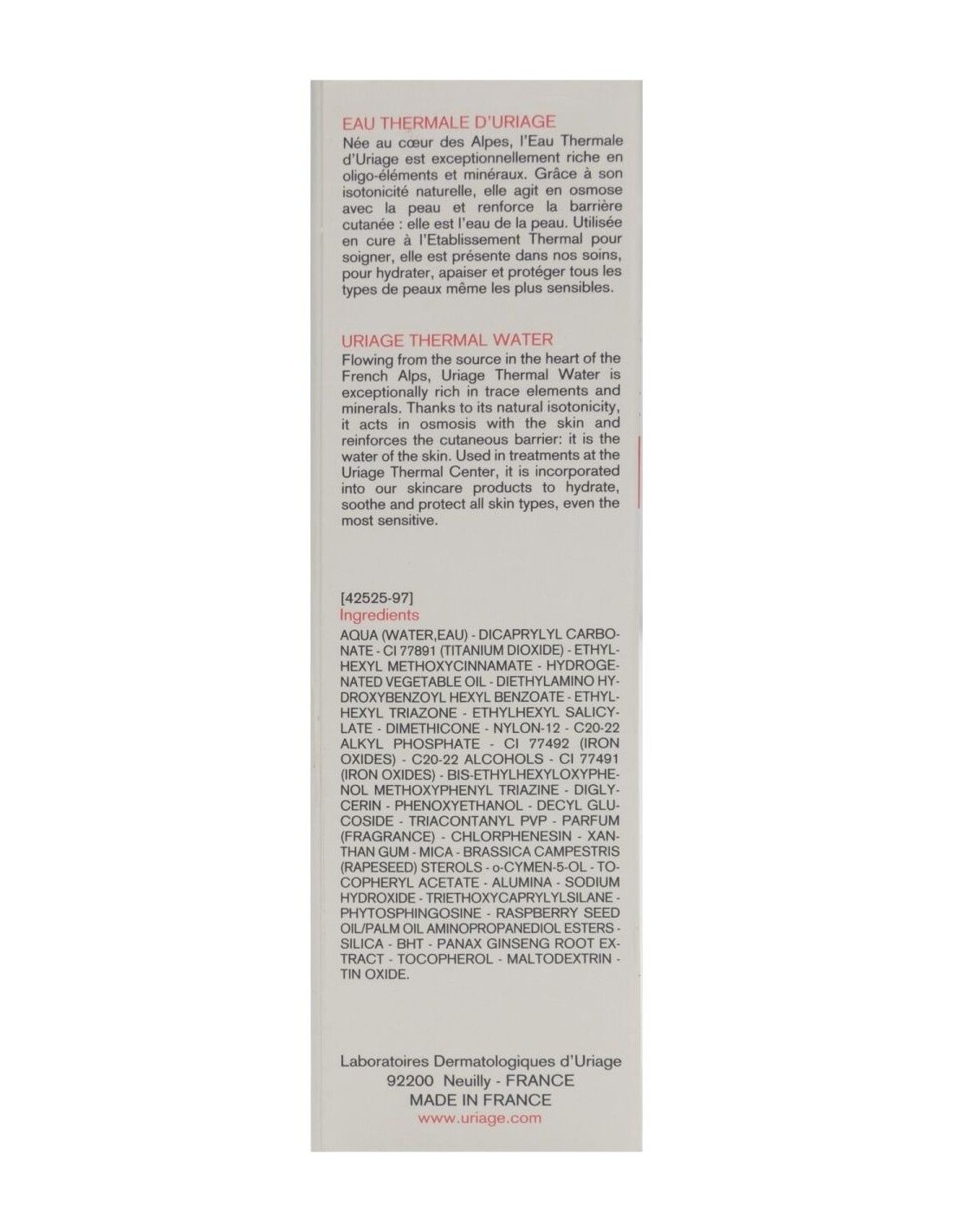 AQUA (WATER, EAU) - DICAPRYLYL CARBONATE - CI 77891 (TITANIUM DIOXIDE) - ETHYLHEXYL METHOXYCINNAMATE - HYDROGENATED VEGETABLE OIL - DIETHYLAMINO HYDROXYBENZOYL HEXYL BENZOATE - ETHYLHEXYL TRIAZONE - ETHYLHEXYL SALICYLATE - DIMETHICONE - NYLON-12 - C20-22 ALKYL PHOSPHATE - CI 77492 (IRON OXIDES) - C20-22 ALCOHOLS - CI 77491 (IRON OXIDES) - BIS-ETHYLHEXYLOXYPHENOL METHOXYPHENYL TRIAZINE - DIGLYCERIN -PHENOXYETHANOL - DECYL GLUCOSIDE - TRIACONTANYL PVP - PARFUM (FRAGRANCE) - CHLORPHENESIN - XANTHAN GUM - MICA - BRASSICA CAMPESTRIS (RAPESEED) STEROLS - o-CYMEN-5-OL - TOCOPHERYL ACETATE - ALUMINA - SODIUM HYDROXIDE - TRIETHOXYCAPRYLYLSILANE - PHYTOSPHINGOSINE - RASPBERRY SEED OIL/PALM OIL AMINOPROPANEDIOL ESTERS - SILICA - BHT - PANAX GINSENG ROOT EXTRACT - TOCOPHEROL - MALTODEXTRIN - TIN OXIDE