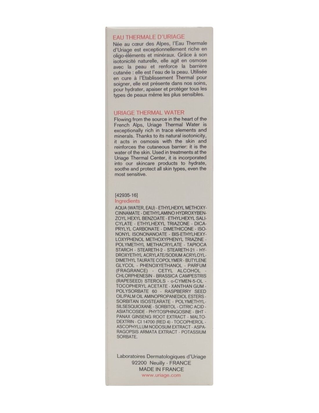 URIAGEUna crema untuosa, fundente y de textura no grasa que alivia de forma duradera las sensaciones de calor y tirantez, disminuyendo las rojeces y proporcionando una alta protección anti-UVA / UVB. Desde el momento de la aplicación, proporciona un confort inmediato y deja la piel suave, calmada y protegida.