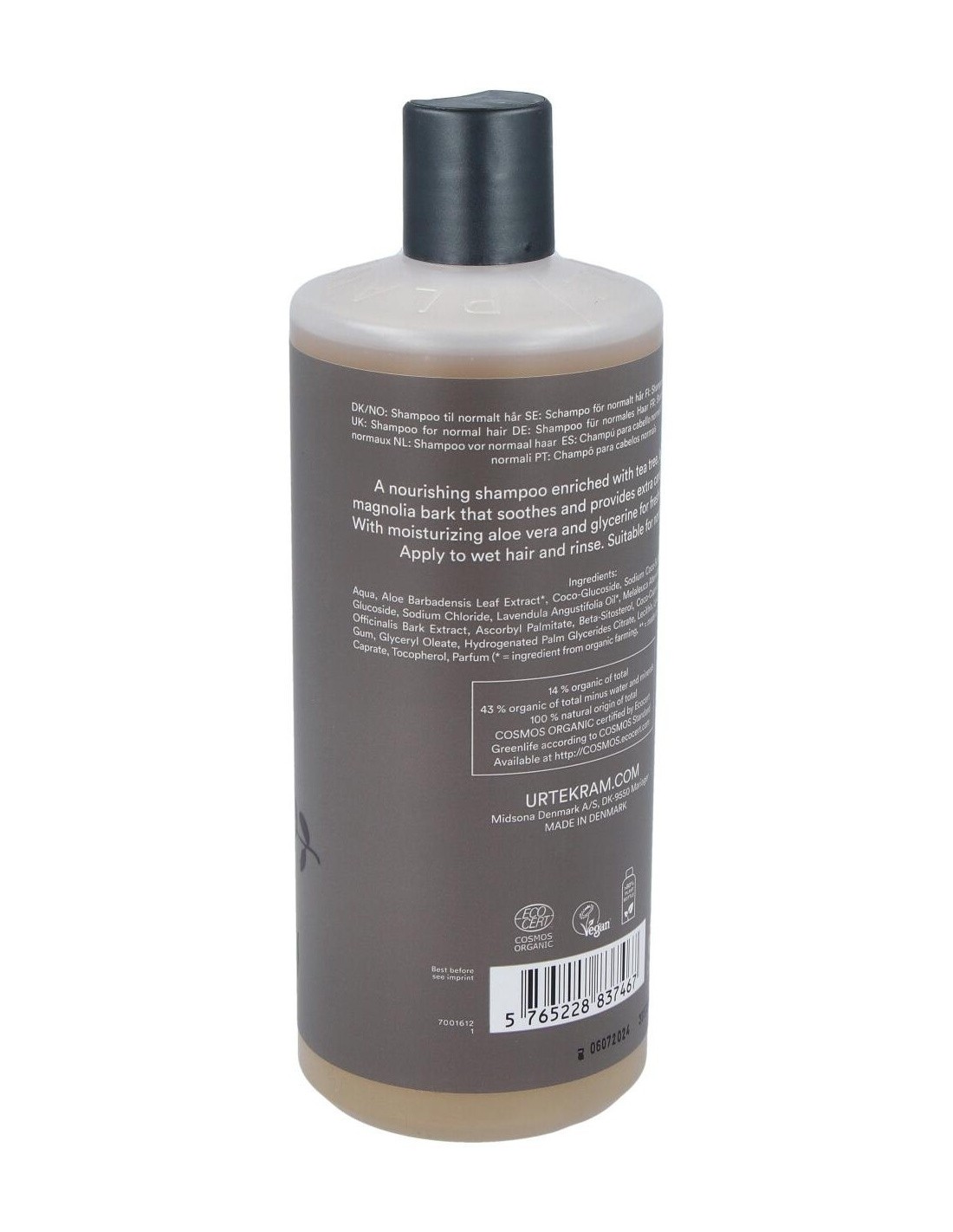 Champú de árbol de té antibacteriano. El aceite de árbol de té es un poderoso desinfectante y trabaja junto con el calmante aceite de lavanda y el extracto de corteza de magnolia. También el aloe vera es regenerante además de hidratante. La glicerina vegetal le da suavidad al cabello. Con agentes limpiadores tensioactivos suaves de origen vegetal que limpian eficazmente. COSMOS ORGANIC certificado por Ecocert Greenlife. Vegano. No testado con animales.