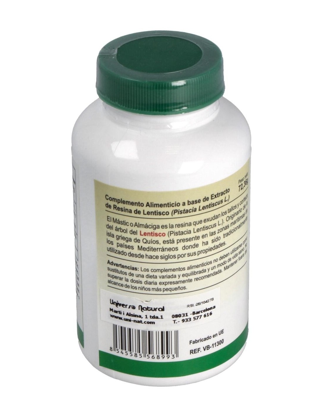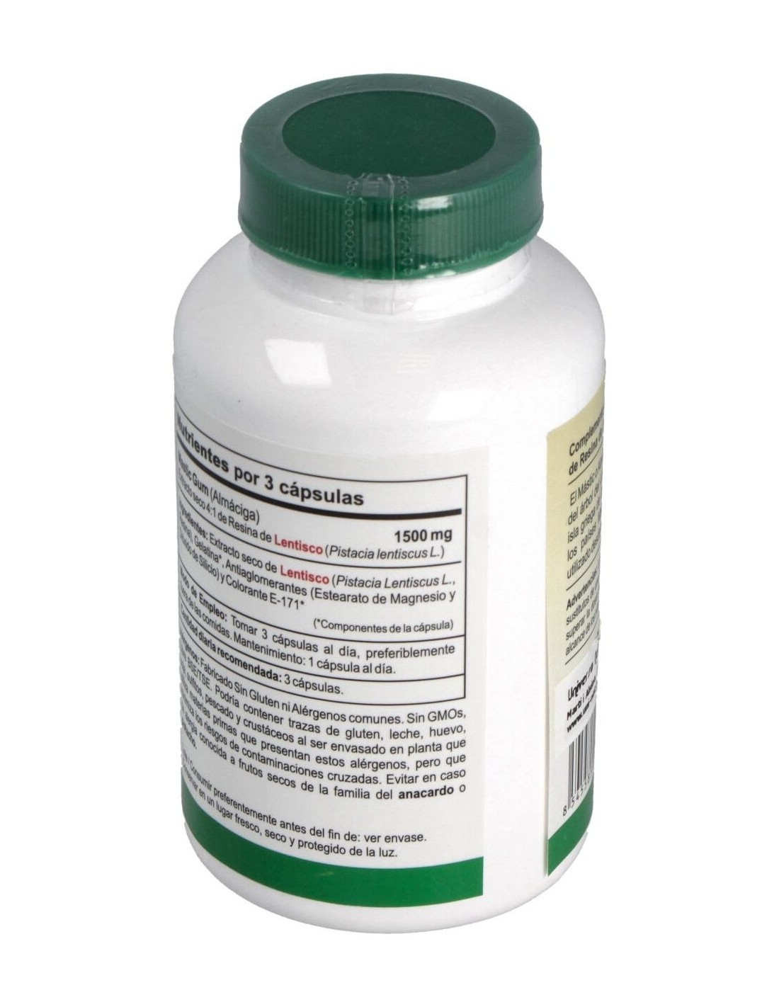 Complemento alimenticio a base resina de lentisco que funciona como protector estomacal, ayudando con la función normal del intestino delgado y el estómago. También tiene propiedades antiinflamatorias, antivirales y antisépticas por lo que es bueno frente a las molestias intestinales y otras bacterias como el Helicobacter pylori.