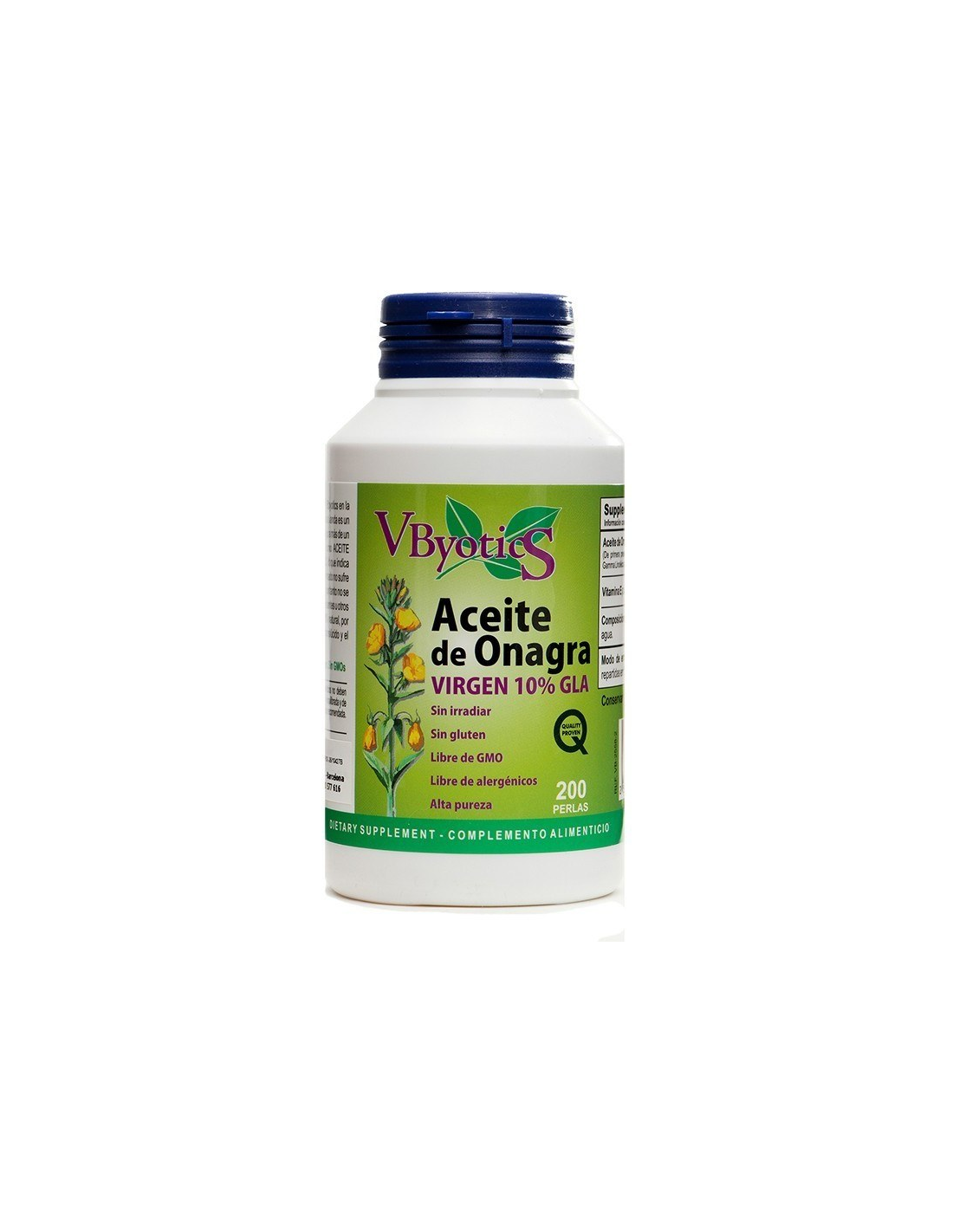 VBYOTICSEl aceite de onagra utilizado por Vbyotics en la elaboración de las perlas de gelatina blanda es un aceite de calidad especial, que asegura más de un 10% GLA y que se define como aceite virgen de presión en frío, lo que indica que tras su obtención mediante prensado no sufre ningún proceso químico posterior y por tanto no se utilizan disolventes, aditivos, antioxidantes u otros agentes sintéticos. Es 100% natural por lo que tiene un color ligeramente translucido y el sabor es algo más intenso.
