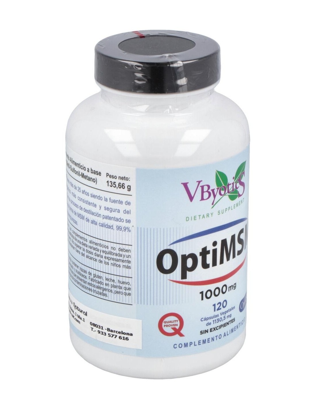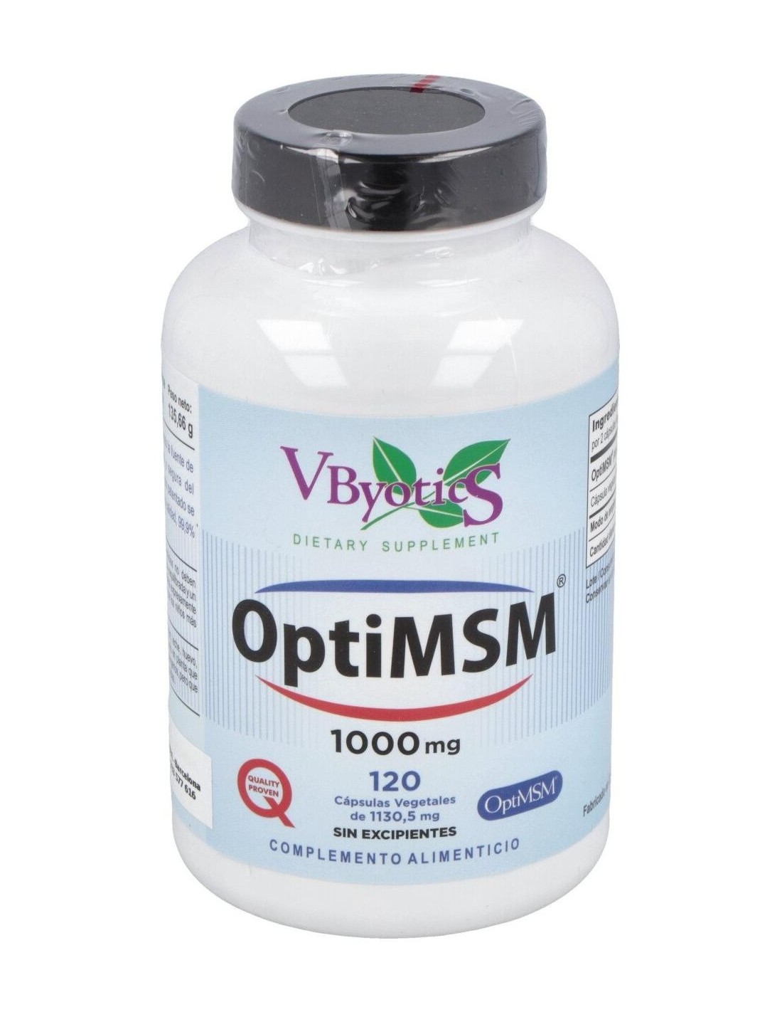 Vbyotics OptiMSM 120caps complemento alimenticio formulado para aportar ayuda al sistema articular. el msm resulta idóneo para mantener en buen estado los músculos y articulaciones, pues este elemento es uno de los que participa en la formación de tejido conjuntivo, ayudándote también a mantener el corazón y pulmones saludables. además, actúa en la síntesis molecular haciendo más permeable cada célula, logrando de esta manera que los nutrientes sean mejor y más rápidamente absorbidos por el organismo.