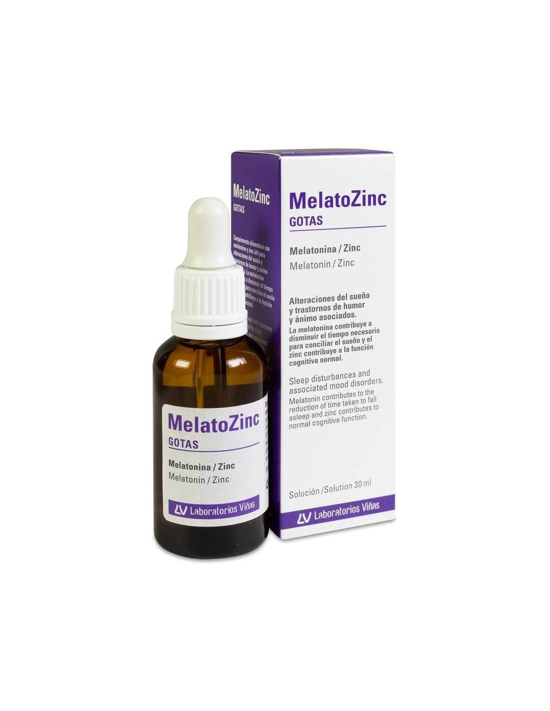 VIÑASLas gotas de MelatoZinc contienen melatonina y zinc. La melatonina es una sustancia natural producida por el cerebro humano que interviene en la regulación del ritmo del sueño. Su producción aumenta con la oscuridad preparando al cuerpo para dormir y disminuye con la luz para permanecer despierto. La melatonina de MelatoZinc contribuye a disminuir el tiempo para conciliar el sueño. En el sistema nervioso, el zinc de MelatoZinc contribuye a mantener la función cognitiva normal y a proteger las células frente al estrés oxidativo.