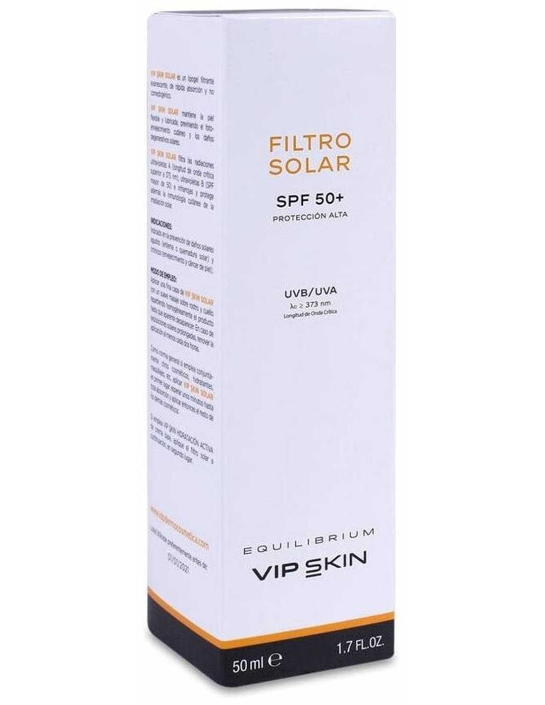 Vipskin Filtro Solar Equilibrium SPF50+ 50ml es un lipogel filtrante evanescente de rápida absorción y no comedogénico que mantiene la piel flexible y lubricada y previene el fotoenvejecimiento cutáneo y los daños degenerativos solares.