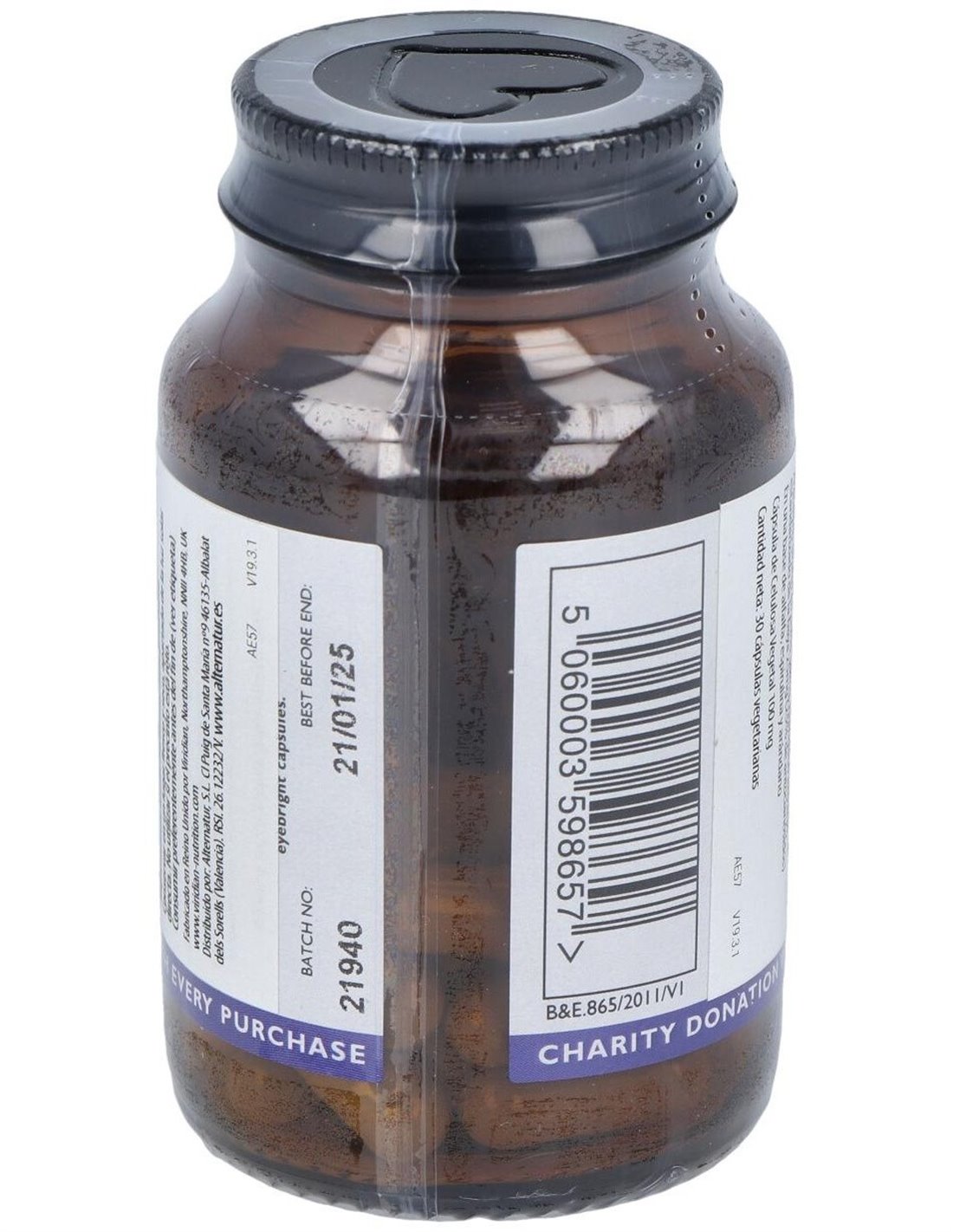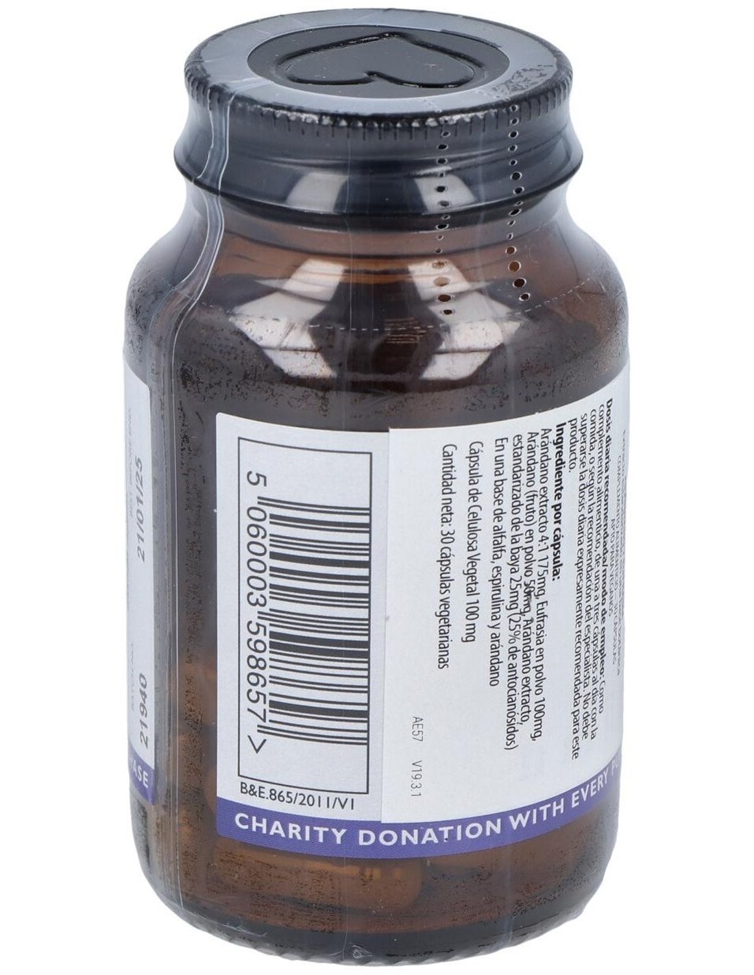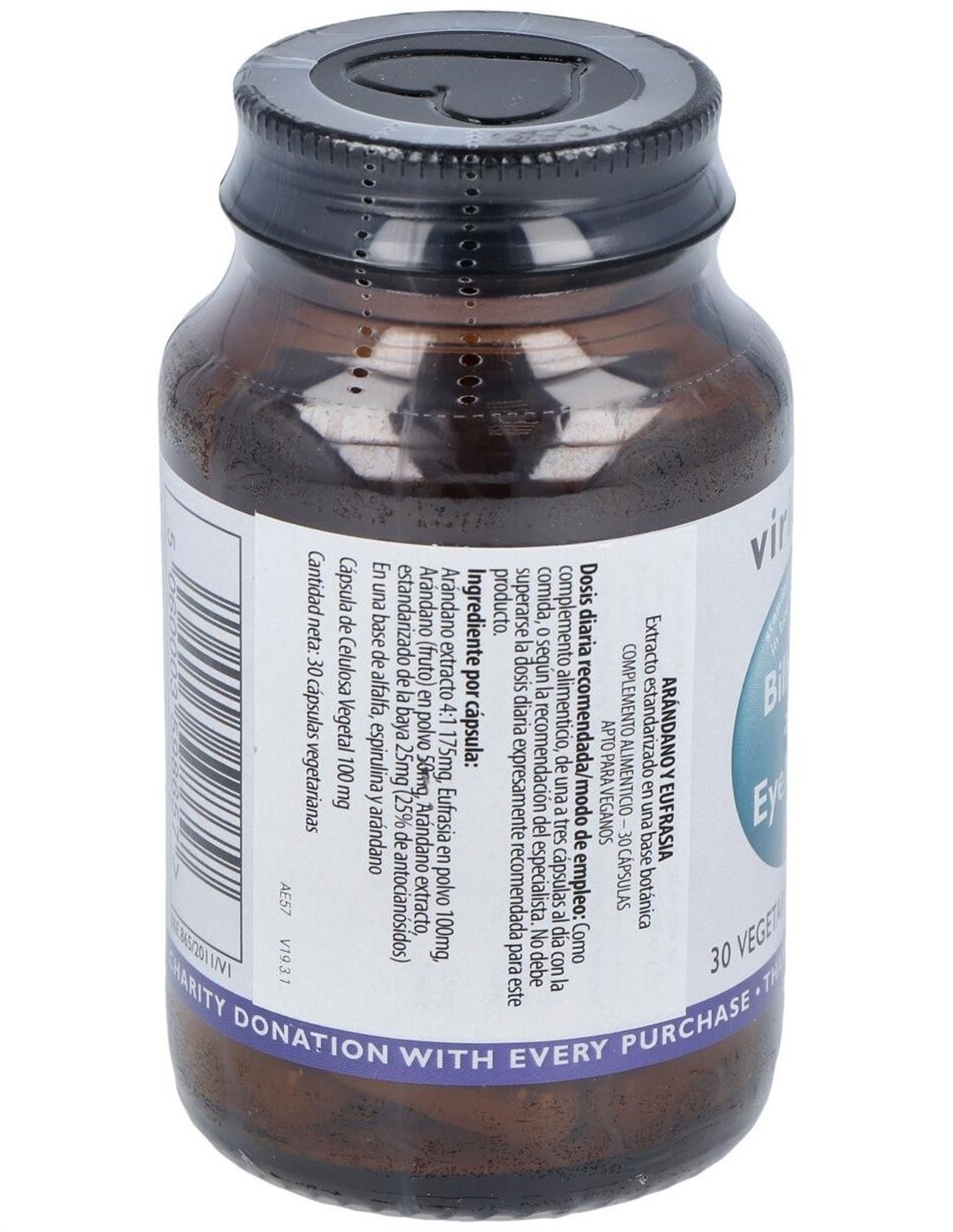 Complemento alimenticio a base de arándano y eufrasia, apto para veganos. No irradiado. No testado en animales.