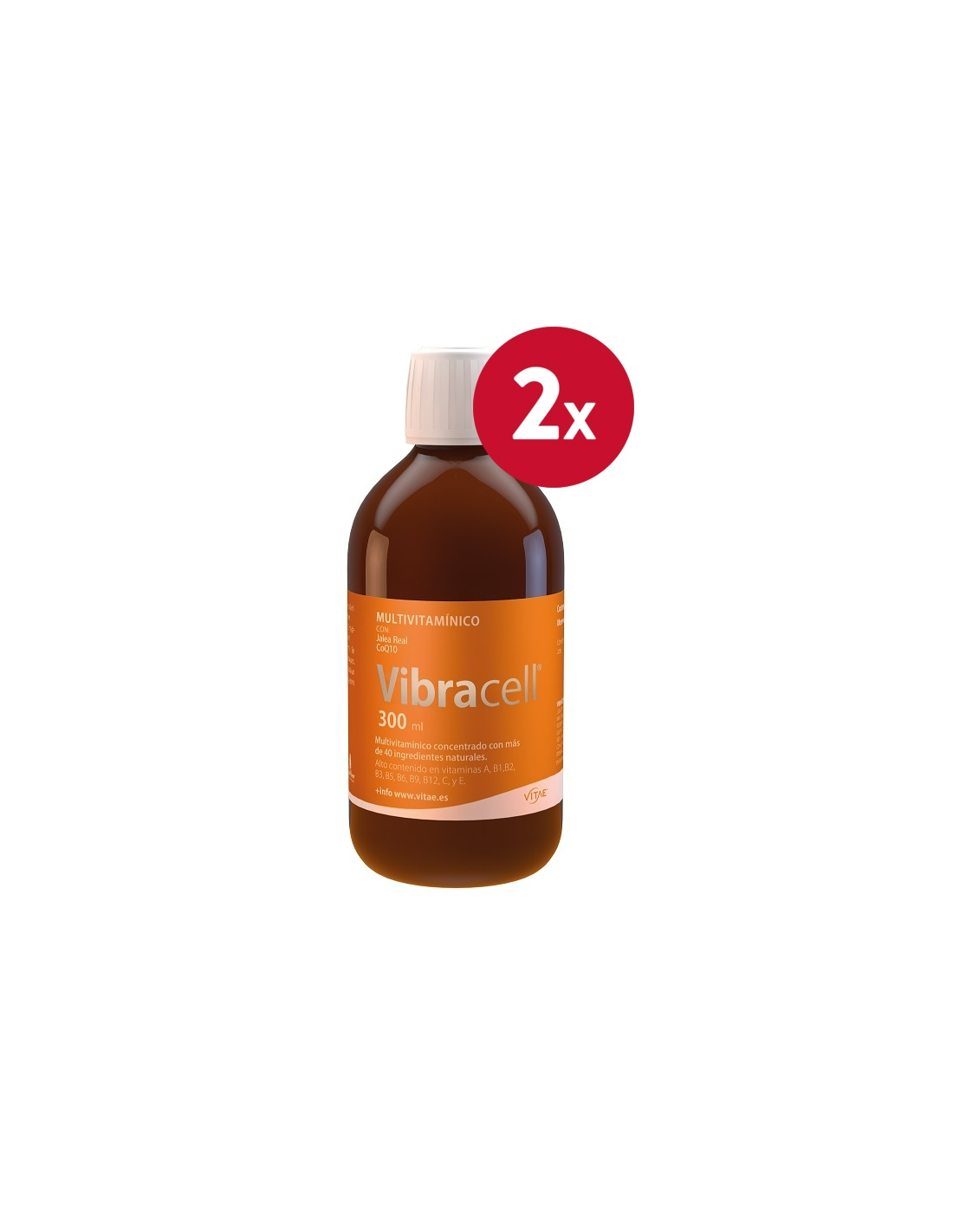 VITAE PACKVibracell® es un multivitamínico natural concentrado con más de 40 ingredientes naturales que complementa la dieta, proporciona energía y mejora el rendimiento físico y mental. Concentrado de zumos de frutas: concentrados de zumos de naranja, limón, fruta de la pasión, grosella negra, arándano, pulpa de tomate, acerola). Concentrado de jugo de verduras lactofermentadas: zanahoria, apio, pepino, chucrut, raíz de remolacha, cebolla y paprika, concentrado de alcachofa de Jerusalén y extracto de alcachofa y brócoli). Extractos de plantas: ortiga, rosa silvestre, lúpulo, mate, melisa, diente de león, manzanilla, romero y aceite de semilla de rosa silvestre). Revitalizantes: jalea real fresca, levadura de cerveza inactiva, coenzima Q10, L-carnitina). Vitaminas y minerales: vitamina A (Retinol), vitamina B1 (Tiamina), vitamina B2, (Riboflavina), vitamina B3 (Niacina), vitamina B5 (Ácido pantoténico), vitamina B6 (Piridoxina), vitamina B9 (Ácido fólico), vitamina B12 (Cianocobalamina), vitamina C (Ácido ascórbico), vitamina D3 (Colecalciferol), vitamina E (Tocoferol), Betacaroteno, Biotina, Selenio. Adultos: tomar de 5 a 10 ml disueltos en agua. Niños de 3 a 12 años: tomar de 2,5 a 5 ml disueltos en agua. Tomar en ayunas antes del desayuno. Agitar el producto antes de cada toma. Guardar en el frigorífico (máximo 2 meses abierto), en el interior de la caja sobre la placa energética.