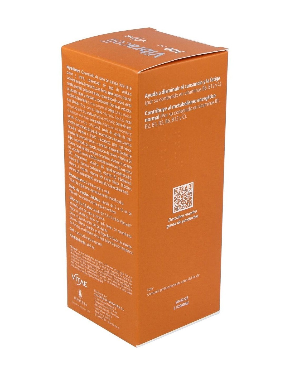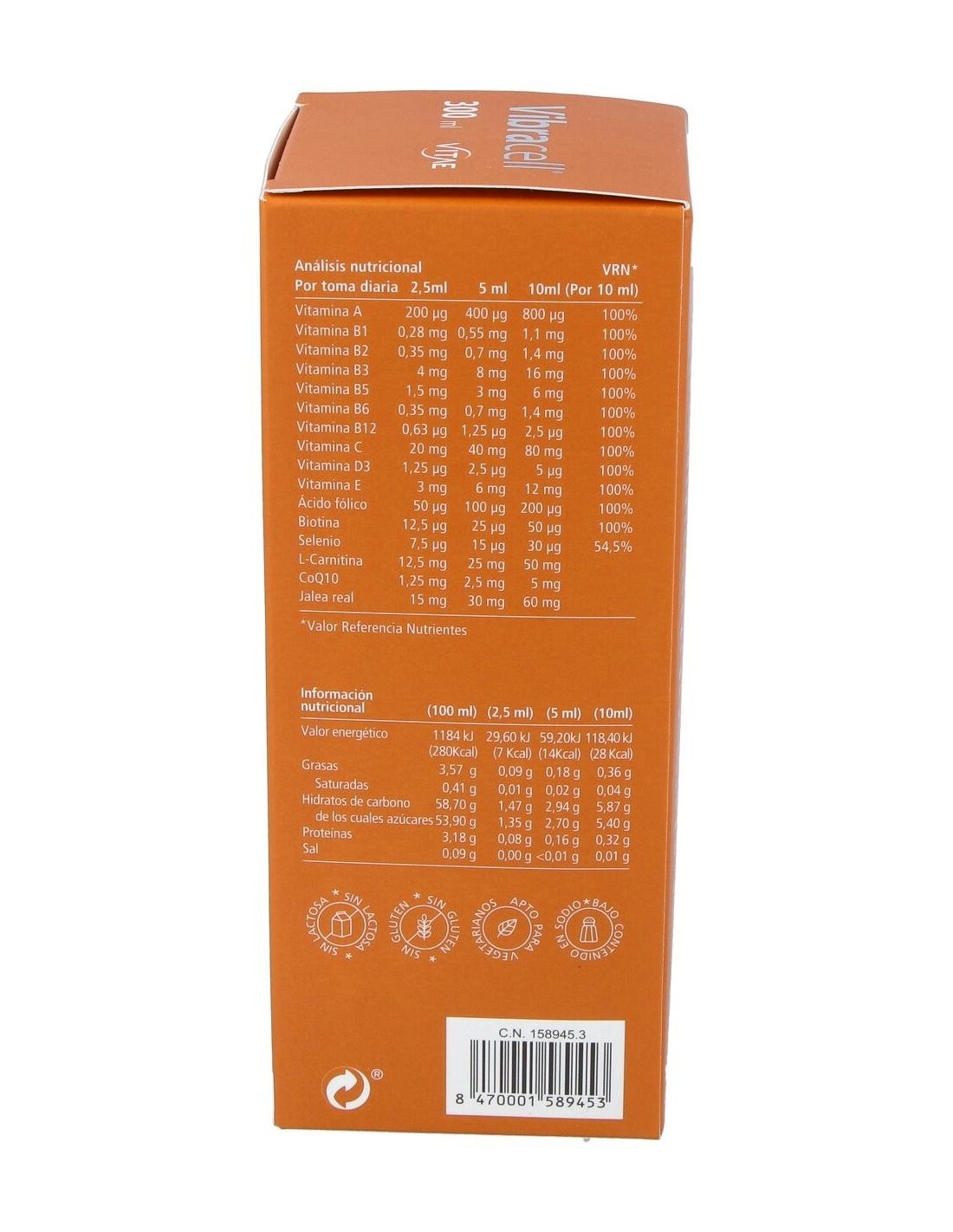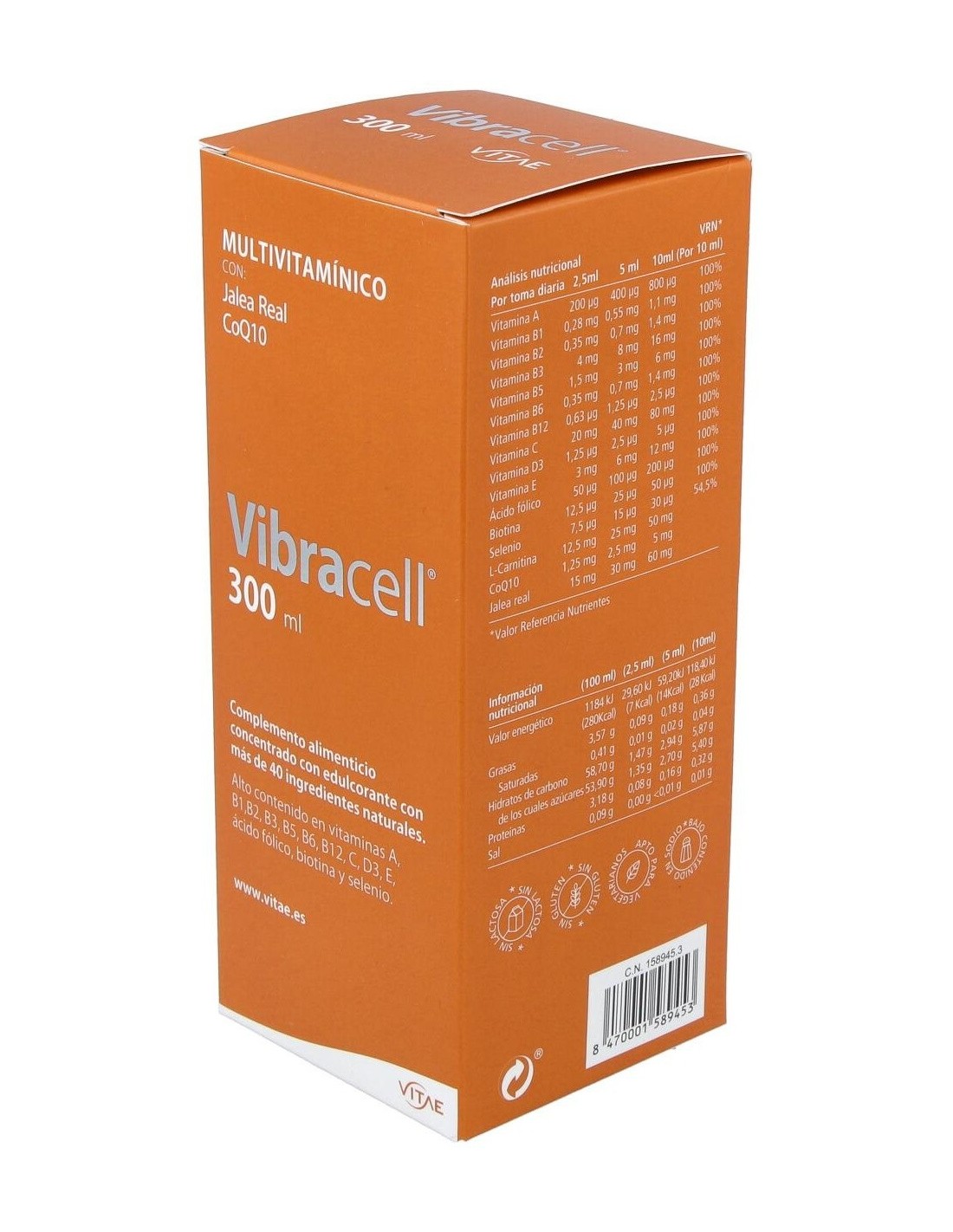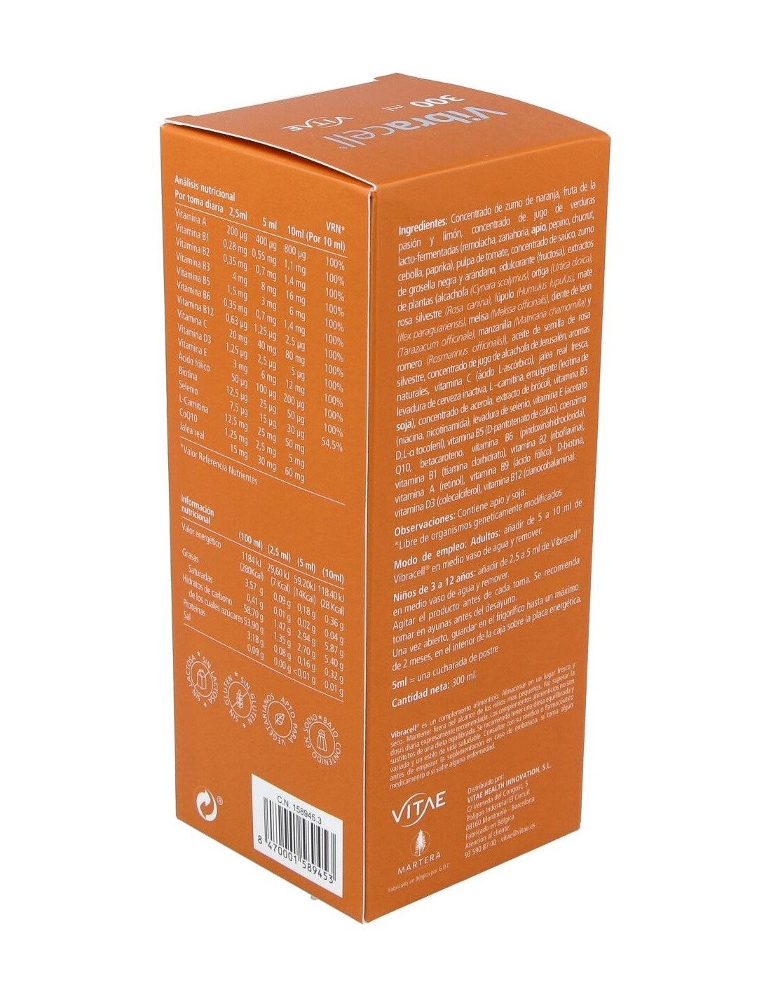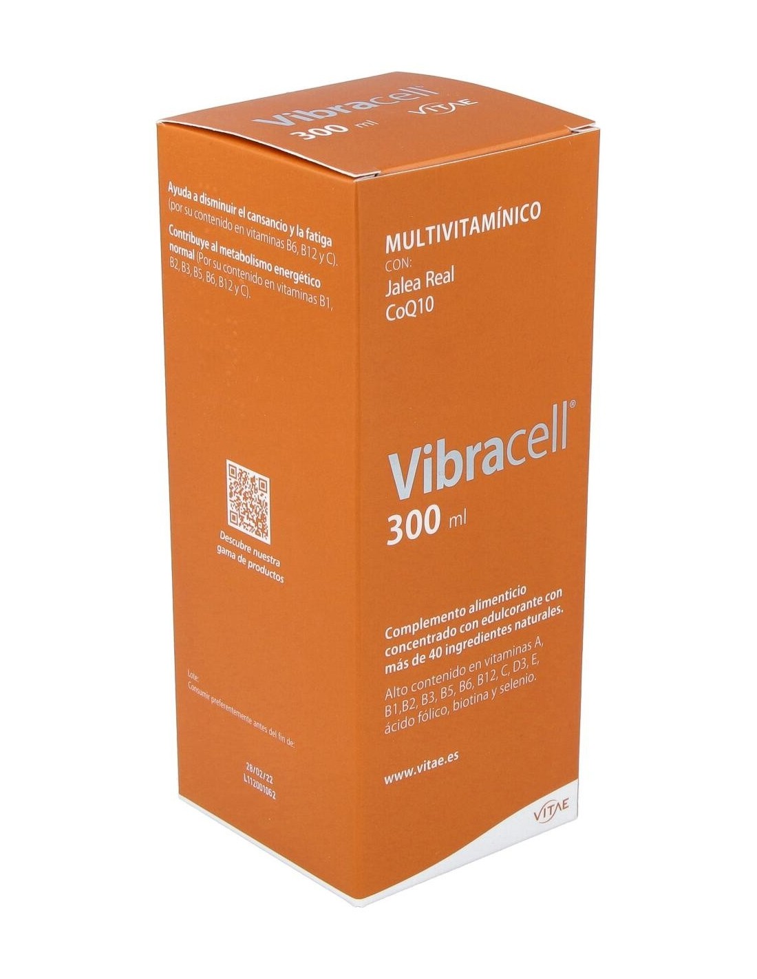 Vitae Vibracell 300ml es un multivitamínico natural concentrado a base de zumo de frutas y verduras con más de 40 ingredientes naturales.