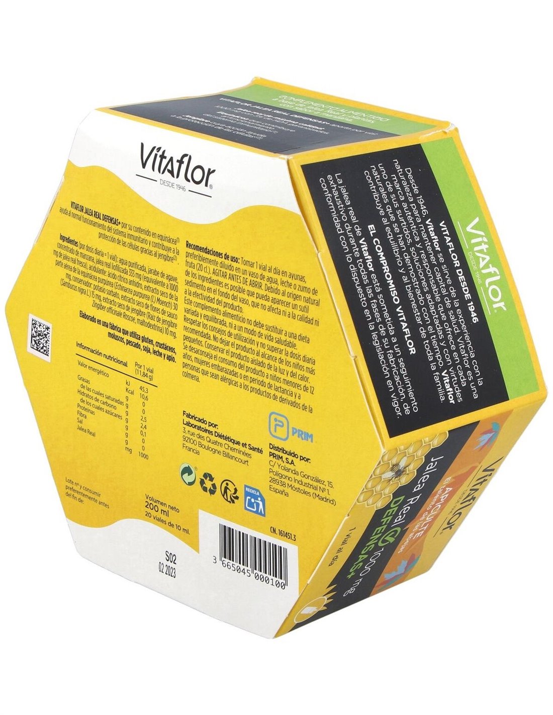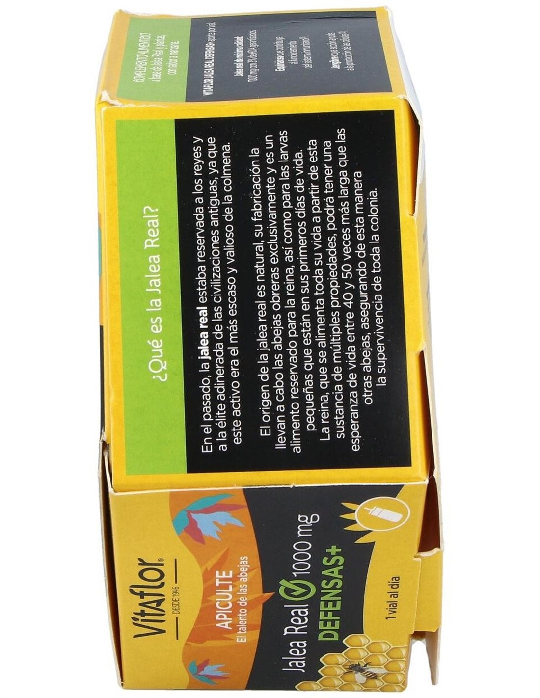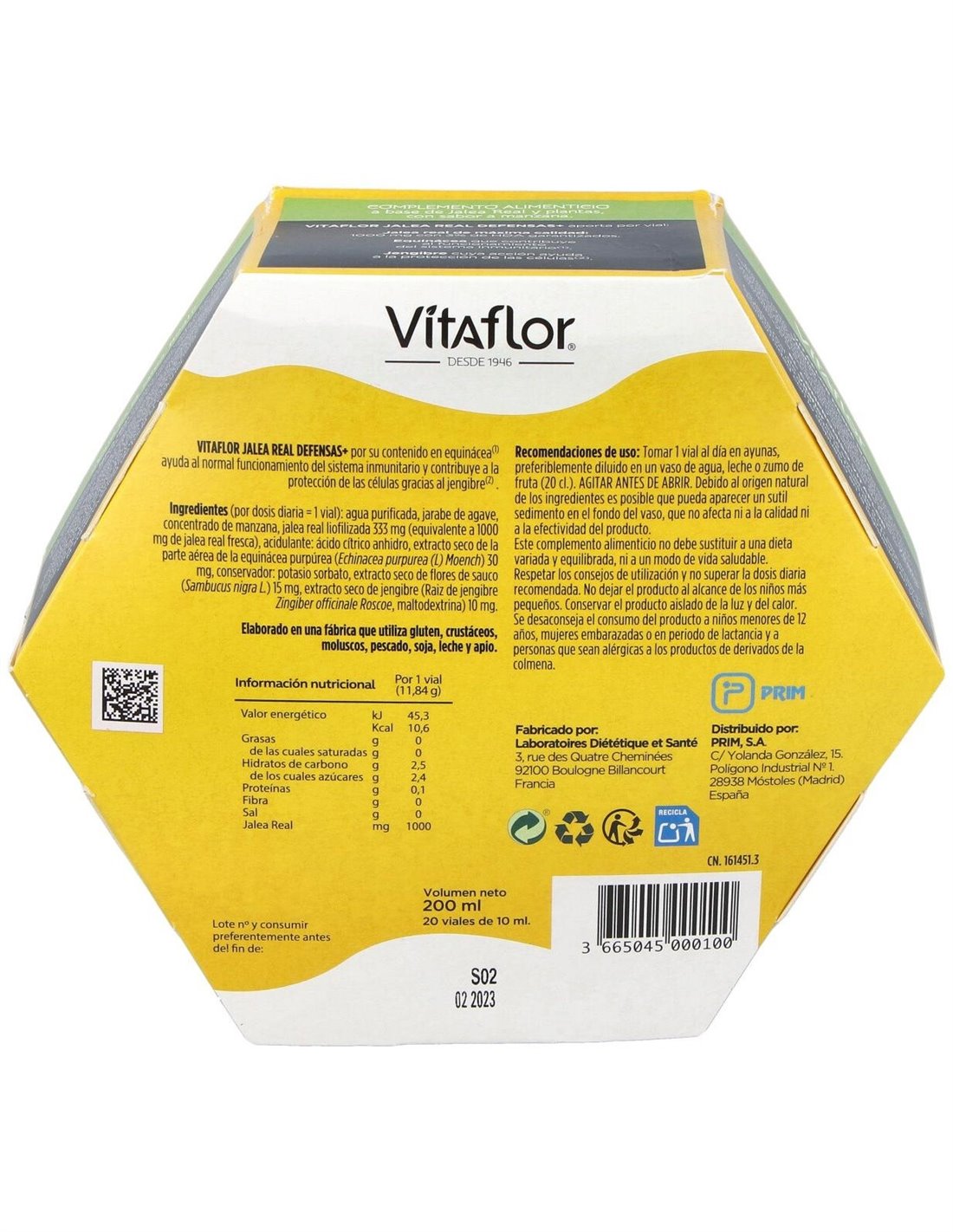 Agua, fructosa, jalea real 1000 mg (con 2% de HDA y 1% de prolina-en extracto seco- garantizado), maltodextrina, extracto fluido de saúco (sambucus nigra, L, flores), extracto blando de plantas: llantén (hojas), tomillo (thymus vulgaris L, hojas), hinojo (foeniculum vulgaris L, frutos), eucalipto (eucalyptus globulus, hojas), saúco (sambucus nigra, L, flores), menta piperita (mentha piperita L, hojas), extracto seco de equinácea (echinacea angustifolia D.C herbal), aroma, ácido L-ascórbico, extracto seco de própolis (0,5% galangina), acidulante: ácido cítrico, conservador: sorbato potásico, aceites esenciales de eucalipto, tomillo e hinojo.